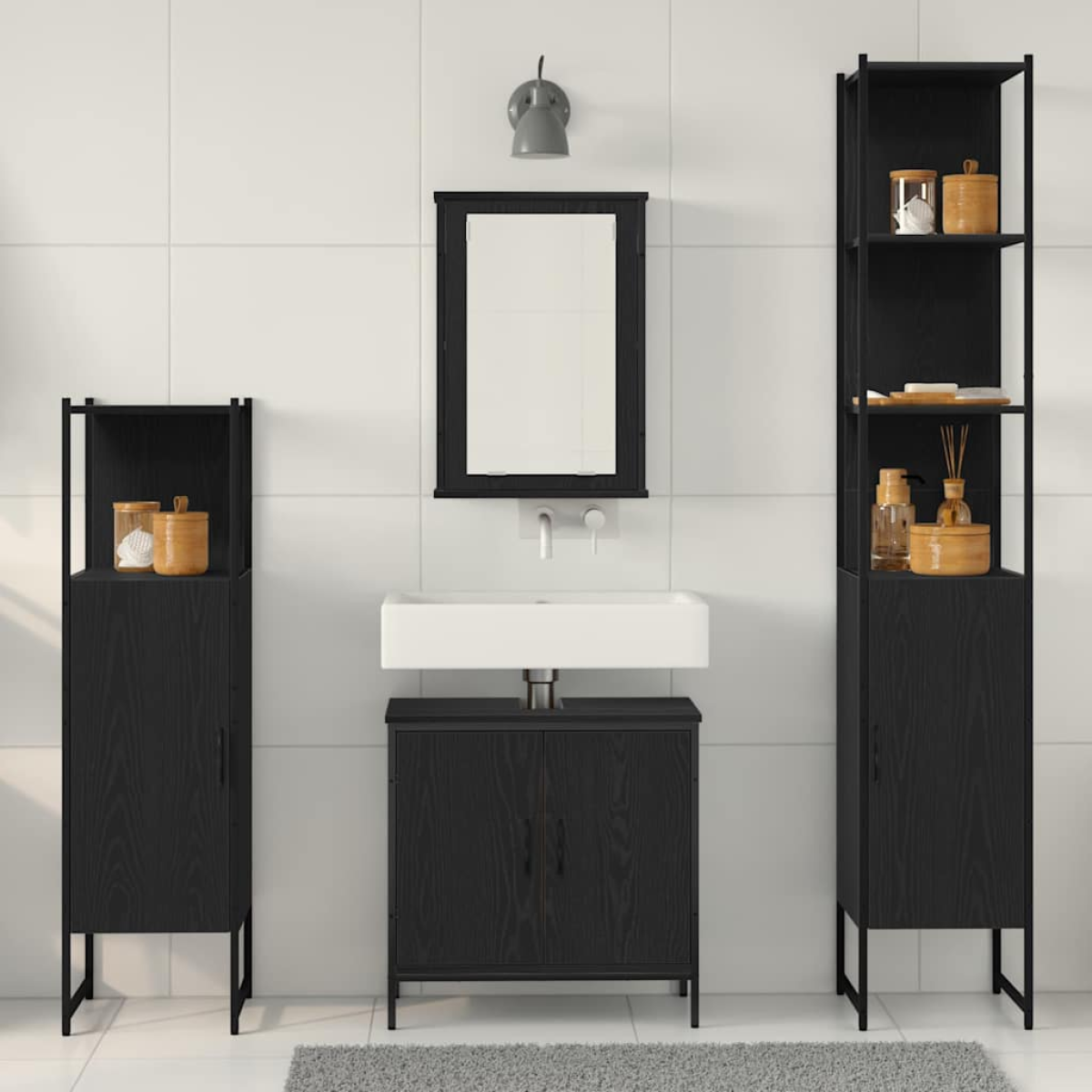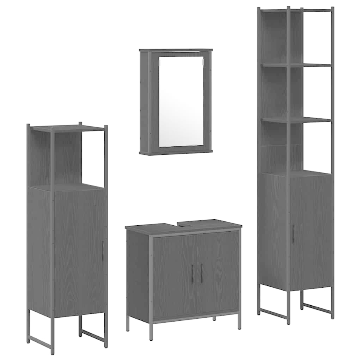 This modern bathroom furniture set is a great blend of simplicity and practicality. If you're into clean lines and not too much fuss, this set will really elevate your bathroom. Whether you're getting ready in the morning or chilling out in the evening, it’s a classy and handy way to sort your bathroom stuff. Made from engineered wood, it looks smart while providing solid storage for all your bathroom essentials. Materials: This furniture set is made from top-notch engineered wood, making it strong and reliable. It lasts ages and looks modern while standing up to moisture and wear—just right for those steamy bathrooms. Included Components: The set comes with loads of shelves to stylishly hold your toiletries and essentials. The flat mirror gives you a clear view for grooming and adds a bit of flair. The flush doors stick to the minimalist look while providing hidden storage. Features / Function / Design: This modern set is all about being functional and simple. Its square shape is perfect for tight spaces without skimping on storage. The smooth doors add a classy touch, giving a cohesive vibe that fits in with any modern bathroom. Recommended Uses: Just right for bathrooms that need to make the most of their space, this furniture set can be arranged in different ways to match your style. It works well with any bathroom decor, giving a tidy look while housing your essentials. Care & Maintenance: To keep it looking sharp, just wipe it down with a dry cloth and avoid harsh chemicals. A bit of regular dusting will keep the engineered wood shiny, making sure your bathroom stays looking ace with minimal effort.