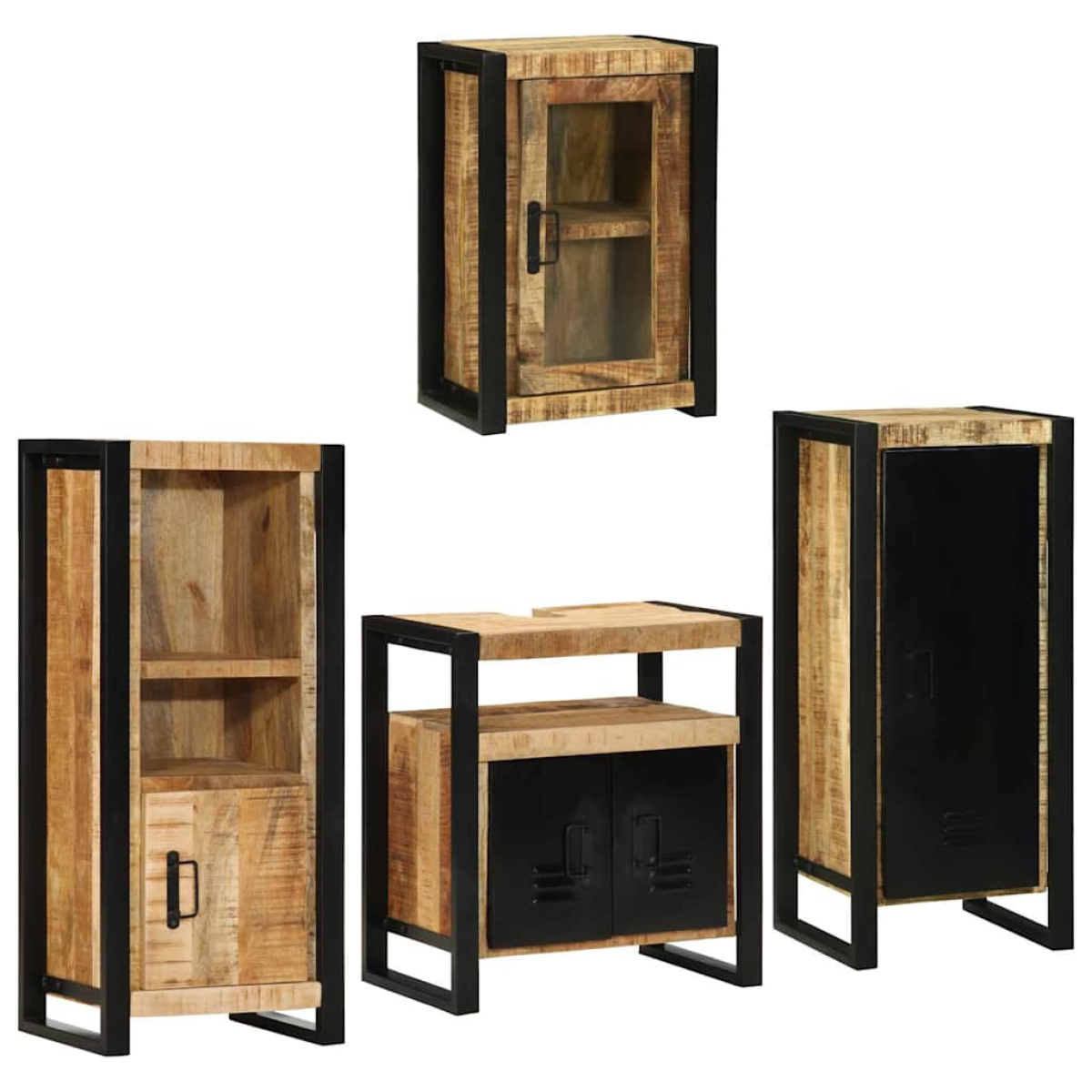 This Modern Bathroom Furniture Set is a perfect embodiment of contemporary style and minimalist functionality. Crafted for those who appreciate clean lines and uncluttered spaces, this set elevates bathroom aesthetics with its chic, streamlined appearance. Designed to cater to modern living, it combines style and practicality, transforming ordinary bathrooms into sleek, understated retreats ideal for relaxation and refreshment. With its combination of contrasting black and brown tones, the set provides a sophisticated visual appeal, making it a suitable choice for those who wish to make a bold statement in their home environment. Sleek Materials: The furniture set is crafted using robust metal materials, ensuring longevity and durability. The smooth surfaces not only simplify cleaning but also enhance the aesthetic appeal of your bathroom, providing a contemporary and stylish look that complements modern interiors. Complete Set: This ensemble includes a bathroom sink cabinet, a freestanding cabinet, a wall-mounted bathroom cabinet, and a wall-mounted shelf. Each component serves a specific purpose, maximizing storage efficiency and catering to diverse organizational needs. Space-Saving Design: Featuring a wall-mounted configuration, the cabinets and shelf offer space-saving solutions without compromising on storage. This clever design enables effective use of limited bathroom space, leaving floor areas uncluttered for a neat, orderly look. Functional Components: With metal handles and flush doors, the set combines functionality with beauty. These elements are highly practical, providing easy access while enhancing the furniture's sleek, modern silhouette. These features add to the overall user experience, offering comfort and ease of use. Easy Care: The set is designed for simplicity in maintenance. Surfaces require only a dry cloth wipe for cleaning, demonstrating practical benefits for busy lifestyles. This straightforward approach to care ensures that the furniture set remains pristine with minimal effort.