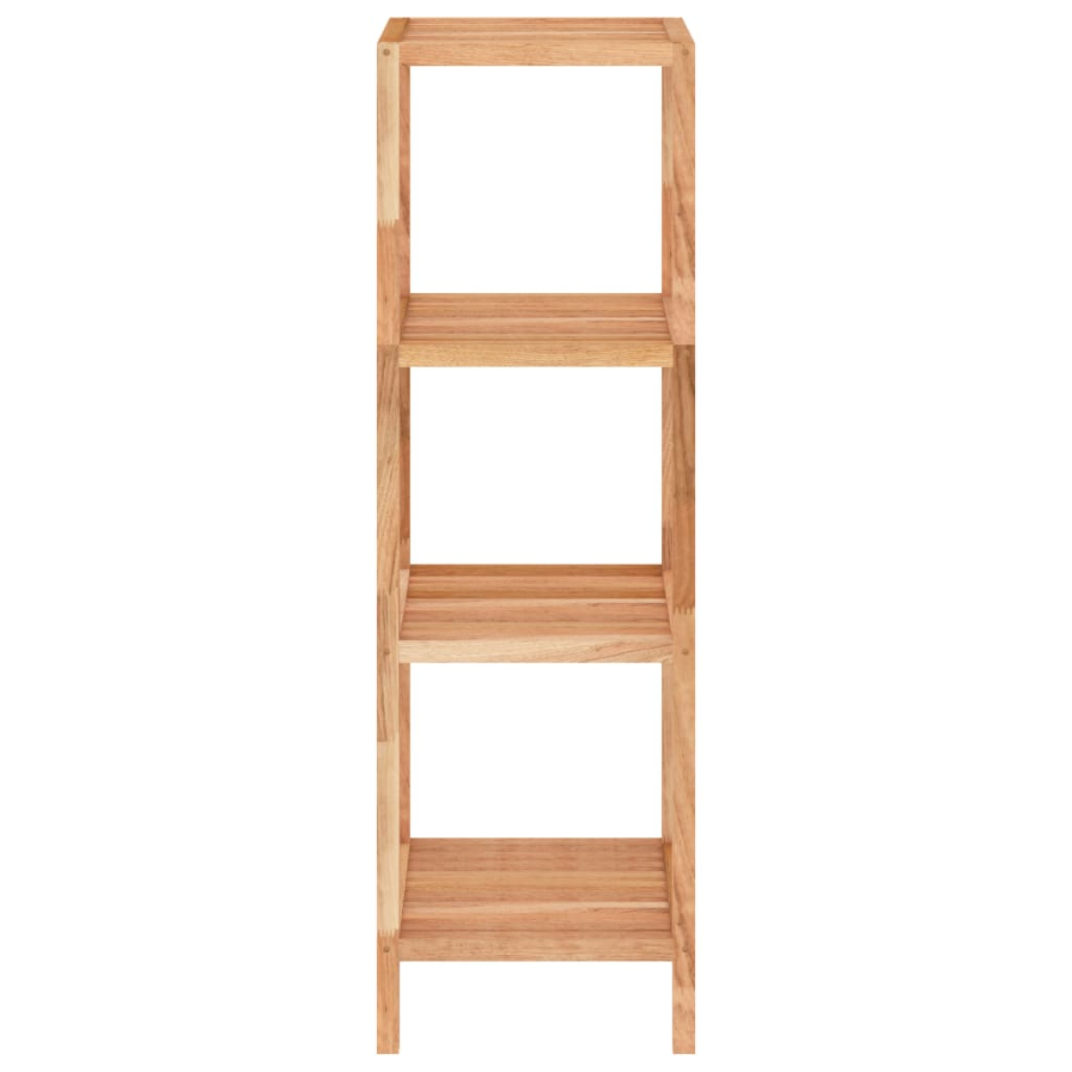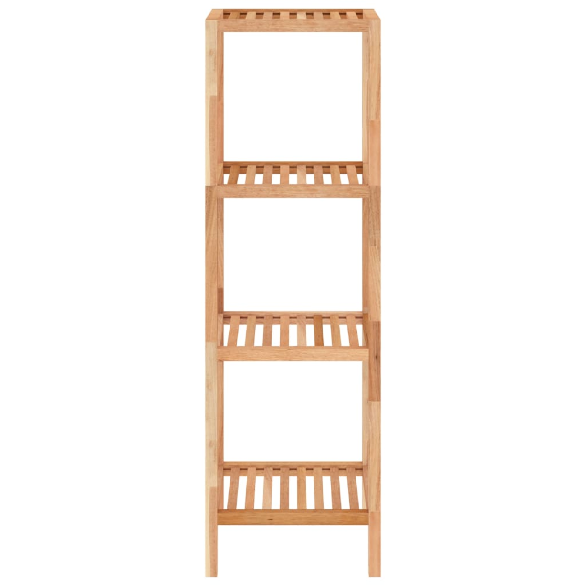 This wooden bathroom shelf allows you to maximise your vertical space in the bathroom, laundry room, balcony, etc. Solid walnut wood: Solid walnut wood is a dense and robust wood that is highly resistant to wear and tear, well known for its characteristic colour and attractive grain patterns.Ample storage: The shower shelf has 4 shelves, which provide ample storage space for things like towels and hygiene products.Great ventilation: The storage shelf is designed with a slatted look, which guarantees optimal ventilation. Warning:In order to prevent overturning, this product must be used with the wall attachment device provided.Note:Each product comes with an assembly manual in the box for easy assembly.