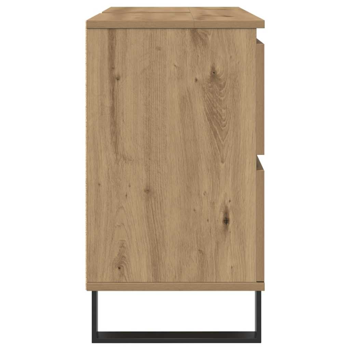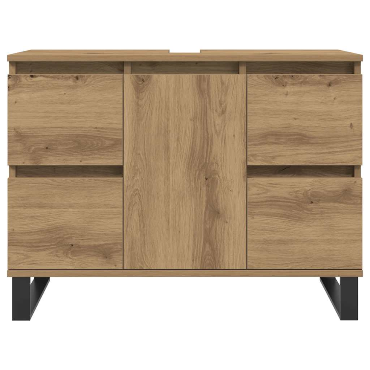 This bathroom sink cabinet is an excellent addition to your bathroom, giving it a tidy and striking appearance! Long-lasting material: The engineered wood is of exceptional quality with a smooth surface and also features strength, stability, and resistance to moisture.Ample storage space: The bathroom sink cupboard offers ample space to easily accommodate your essential toiletries and bath items such as soaps, shampoo, toothpaste, etc.Space-saving design: The top of the bathroom cabinet is ideal for placing the sink so that you can fully utilise the vacant space under the sink.Iron feet: The iron feet add an industrial style to your interior while ensuring the stability of the restroom vanity. Warning:To prevent it from tipping over, this product must be used with the provided wall attachment device.