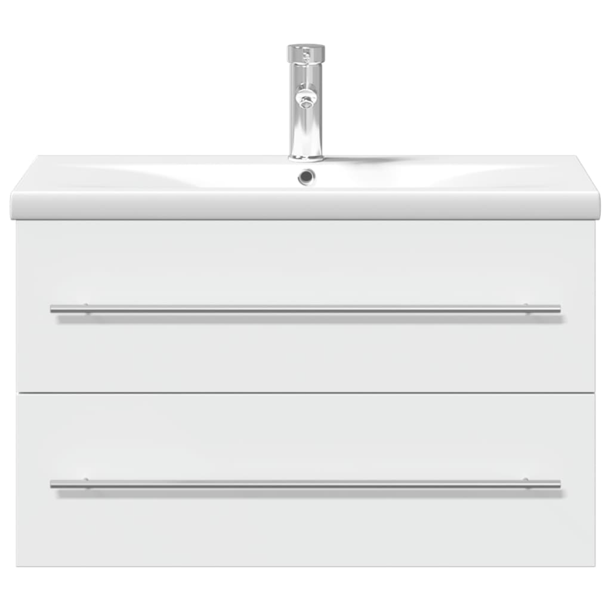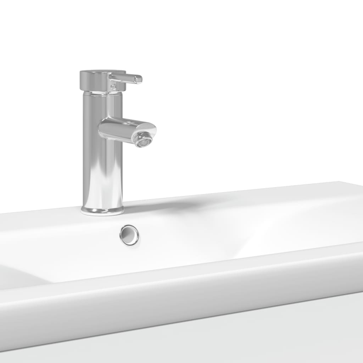 This stylish bathroom sink cabinet with a built-in basin, featuring spacious storage space, is an excellent addition to your bathroom, giving it a tidy and striking appearance! Sturdy material: The under sink cabinet is made of engineered wood, that is of exceptional quality with smooth surface and also features strength, stability and resistance to moisture.Ample storage: The bathroom sink unit features 1 drawer, offering ample storage space to store items in your bathroom.Wall-mounted function: The bathroom cabinet can be wall-mounted to add extra storage space. That way, you can maximise your floor space and keep the area clean.Elegant basin: The bathroom basin is made of smooth ceramic that is long-lasting service and easy to clean. The glazed surface brings itself a modern yet elegant design.Practical overflow: The wash basin is equipped with an overflow-preventing option to allow the water out when it gets too full. Good to know:Screw(s) and plug(s) for inside the wall are not included. Seek and use screw(s) and plug(s) suitable for your walls. If you are uncertain, seek professional advice. Read and follow each step of the instruction carefully.The faucet and push drainer with overflow function are included.The tap is a hot and cold tap, and if you have a need for hot water, a water heater must be connected.