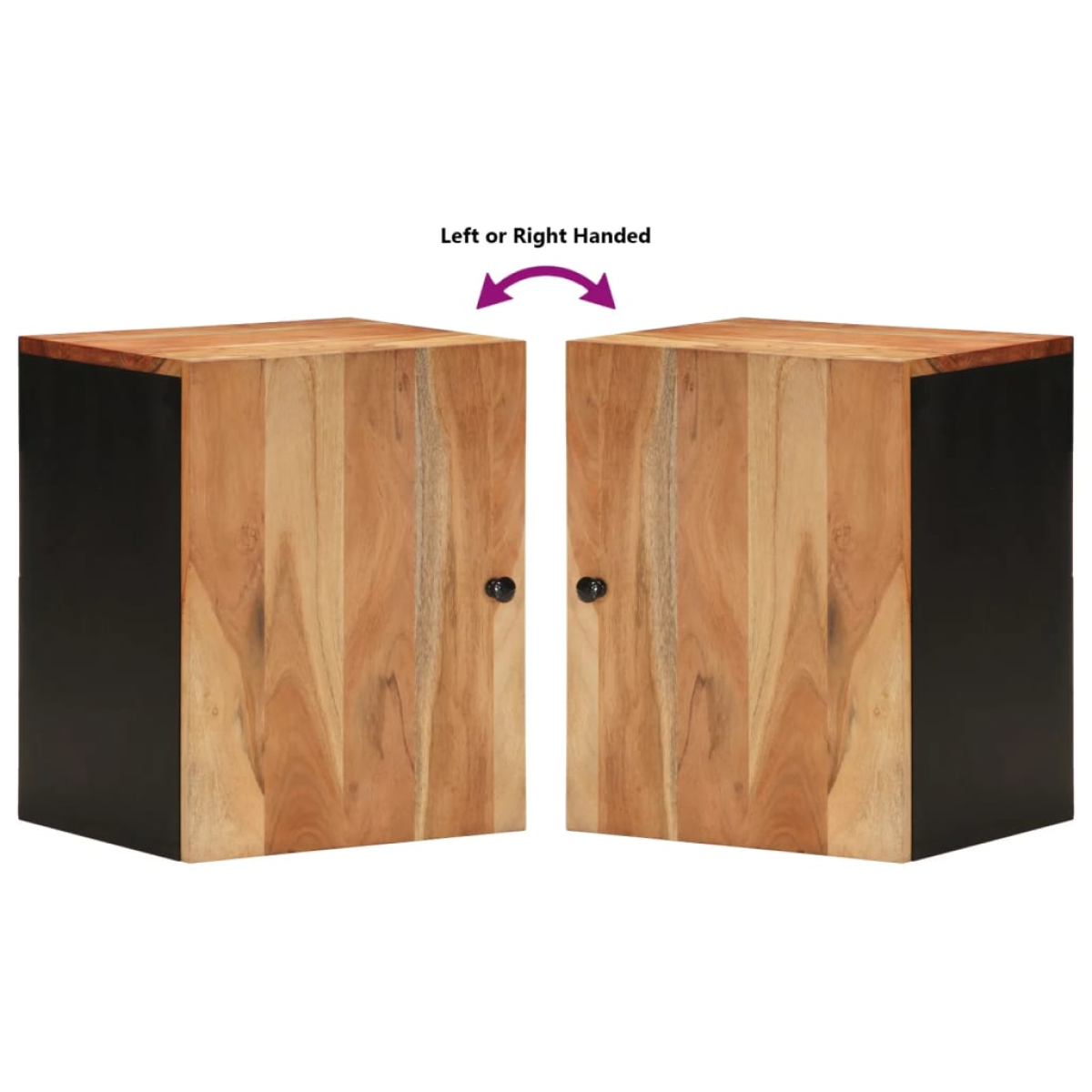 This bathroom wall cabinet is meant to optimise your wall space and decorate your bathroom! Solid acacia wood: This wall cabinet is made of solid acacia wood combined with engineered wood. Solid acacia wood is a beautiful natural material. Acacia wood is a tropical hardwood, which is dense, sturdy, and durable.Ample storage space: The hanging cabinet has 2 compartments, offering extra space to store items in your bathroom.Wall-mounted function: This bathroom cabinet doesn't take any floor space. You can hang it on the wall easily.Flexible door: You can install the door either on the left side or right side based on your own needs. Good to know:Screws and plugs for inside the wall are not included. We advise to find and use screws and plugs suitable specifically for your walls. If you're not sure, you can consult with a professional. Please read and follow each step of the instructions.Each item is unique with variations in colours and grains. The delivery is random, ensuring the exclusivity and individuality of your product.