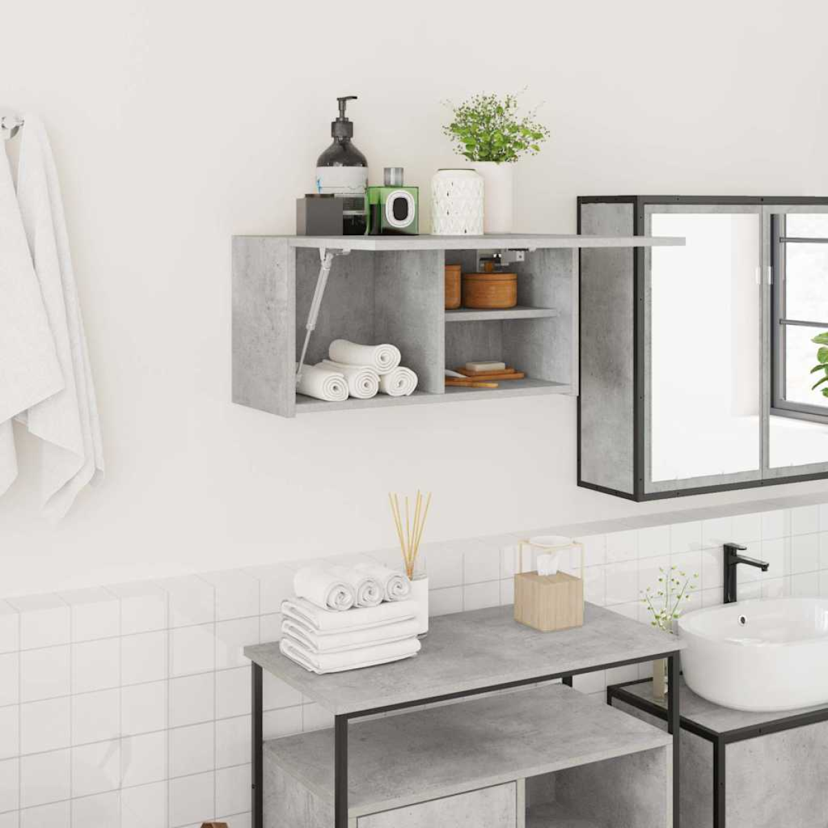 This bathroom wall cabinet is meant to be a decorative as well as a practical extension to your home decor. Stable and durable material: Engineered wood is a durable and stable material with a smooth surface that is resistant to moisture, warping, and splitting, making it a reliable choice for various projects.Ample storage space: This bathroom wall cabinet offers handy storage space for keeping your various daily essentials well organised and within easy reach.Practical design: The cabinet doors feature a gas spring that can be installed on either the left or right, depending on your preference. This design allows the door to open gently, quietly, and effortlessly, giving the cabinet its unique minimalist look.Wide applications: Thanks to their timeless design, this bathroom wall cabinet effortlessly complements your decor and can be used in the bathroom, kitchen, living room, bedroom, and more. Good to know:Screws and plugs for inside the wall are not included. We advise to find and use screws and plugs suitable specifically for your walls. If you're not sure, you can consult with a professional. Please read and follow each step of the instructions.