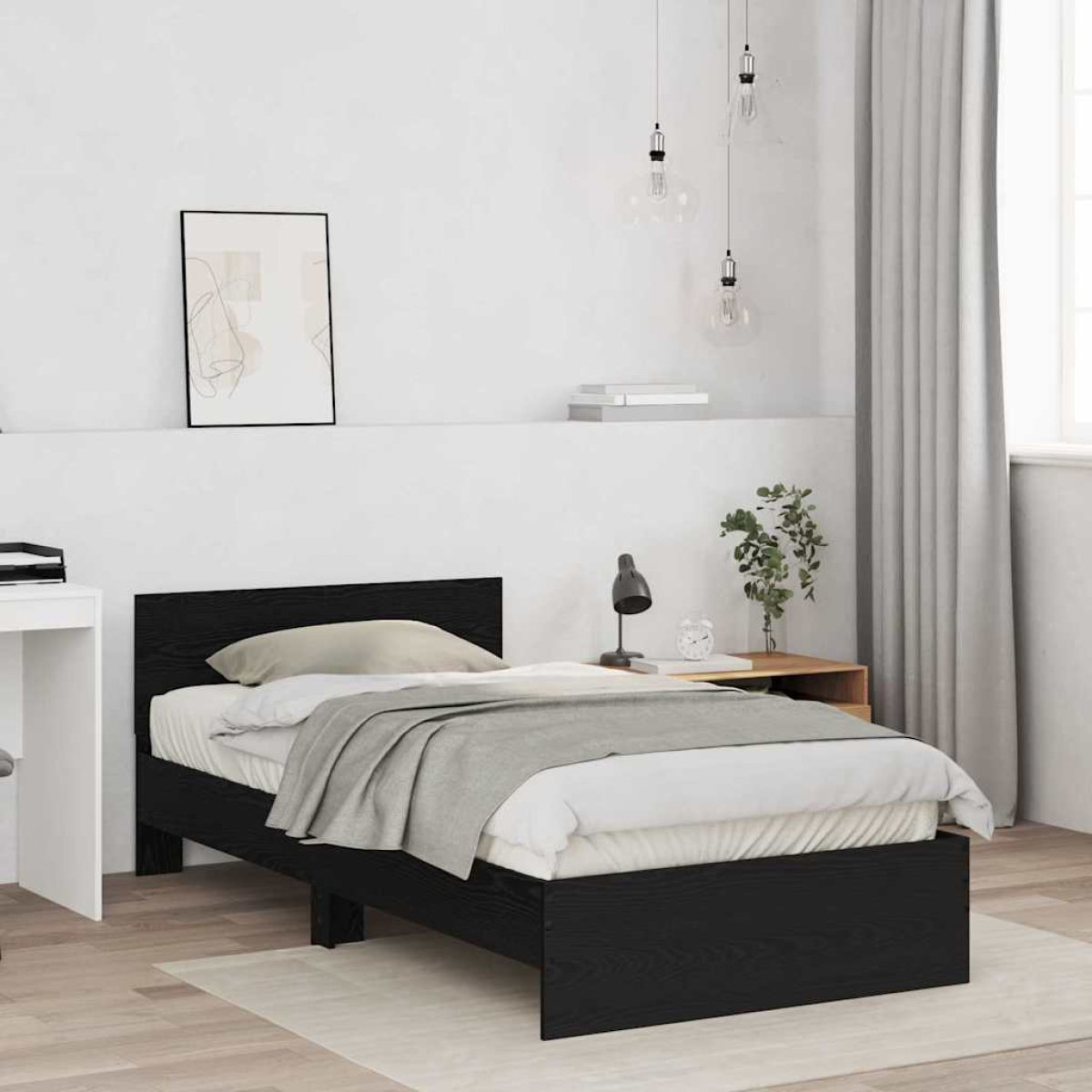 This Bed Frame with Headboard brings a blend of modern class and practical design to spruce up any bedroom space. With its sleek and simple design, it makes for a stylish backdrop that highlights your other furniture nicely. The wall-mounted headboard saves you precious floor space while adding a luxe feel to the room. Made from engineered wood, it's built to last, making it a smart choice for folks who love contemporary style without compromising on quality. Modern Elegance: This bed frame shows off the subtle charm of modern design with its clean lines and simple finish. Its minimalist vibe fits in well with all sorts of bedroom themes, creating a chill and relaxing atmosphere. It adds to your space without taking over. Space-Saving Solution: The wall-mounted headboard is a clever and stylish addition, especially great for smaller rooms. By attaching it to the wall, you free up floor space, making your bedroom more functional. This feature turns your bed into a striking centerpiece. Robust Build: Made from engineered wood, this bed frame is all about strength and durability. It provides solid support for you and your mattress, helping you get a good night's sleep backed by long-lasting quality. Functional Simplicity: The bed frame is designed to meet your sleeping needs without fuss. It's easy to put together with just two people, making it no hassle at all. Its straightforward look keeps things tidy while still being reliable. Low Maintenance: Keeping the bed frame clean is a cinch — a quick wipe with a damp cloth does the trick. The smooth surface of the engineered wood makes cleaning a doddle, so you spend less time on chores and more on enjoying your space. This ease of care helps maintain a fresh look for longer.