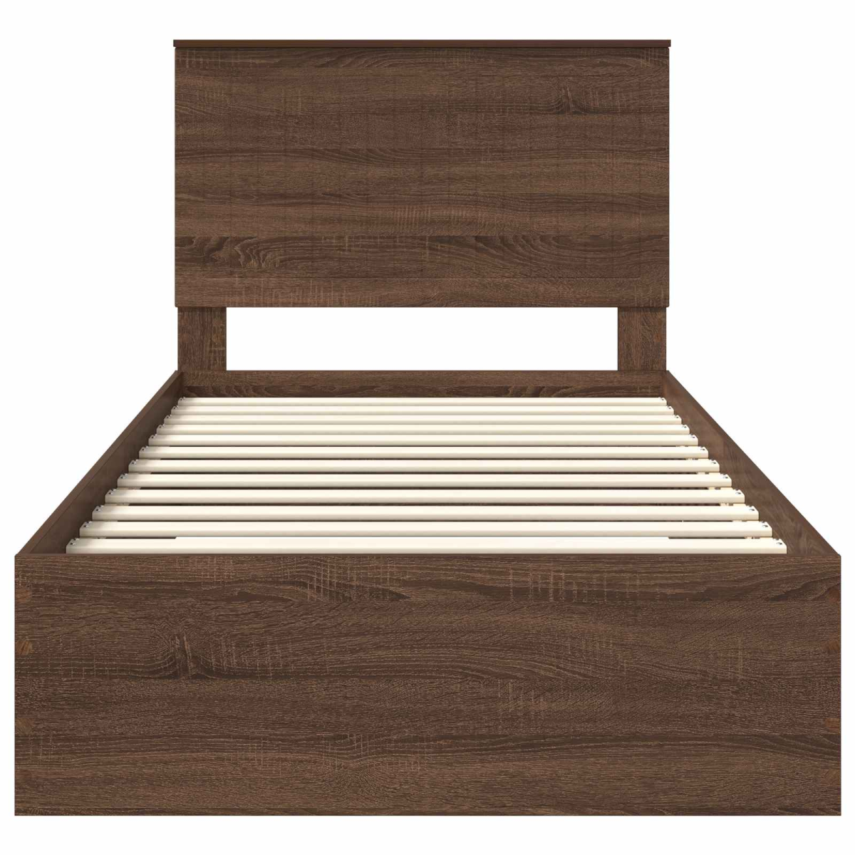 This Modern Storage Bed Frame transforms a bedroom into a functional yet stylish sanctuary. Combining storage utility with modern aesthetics, the bed frame is designed for those seeking sleek utility. Its understated look is highlighted by clean lines, making it suitable for modern decor. Offering ample storage options without sacrificing elegance, it allows for both visual appeal and spatial efficiency, catering to individuals who value order and elegance alike. High-Quality Engineered Wood: Constructed from engineered wood, the bed frame ensures stability and resilience. This choice of material provides a consistent look while resisting warping and cracking over time, enhancing the bedroom's aesthetic with its sleek, smooth surface that complements various decorative styles. Drawers with Metal Handles: The integrated storage system features traditional drawer mechanisms with metal bar handles. These drawers offer ample space to tuck away bedding, clothing, or miscellaneous items, ensuring your bedroom remains clutter-free. The metal handles provide a firm grip, adding a touch of modern sophistication. Functional Headboard Design: The headboard, made from sturdy engineered wood, not only completes the visual appeal but also contributes to the bed's durability. Its simple elegance allows for seamless integration into various bedroom themes, combining aesthetics with practical support. Adjustable Height Frame: The bed frame height is adjustable between 93.5-100 cm, offering customization for personal comfort and style preference. This flexibility promotes ergonomic benefits, allowing ease of use for individuals of different heights and sleeping needs. Low Maintenance Care: Maintain the bed's pristine condition with a simple wipe using a damp cloth. This minimal care routine saves time and effort, ensuring your furniture maintains its fresh appearance without demanding attention.