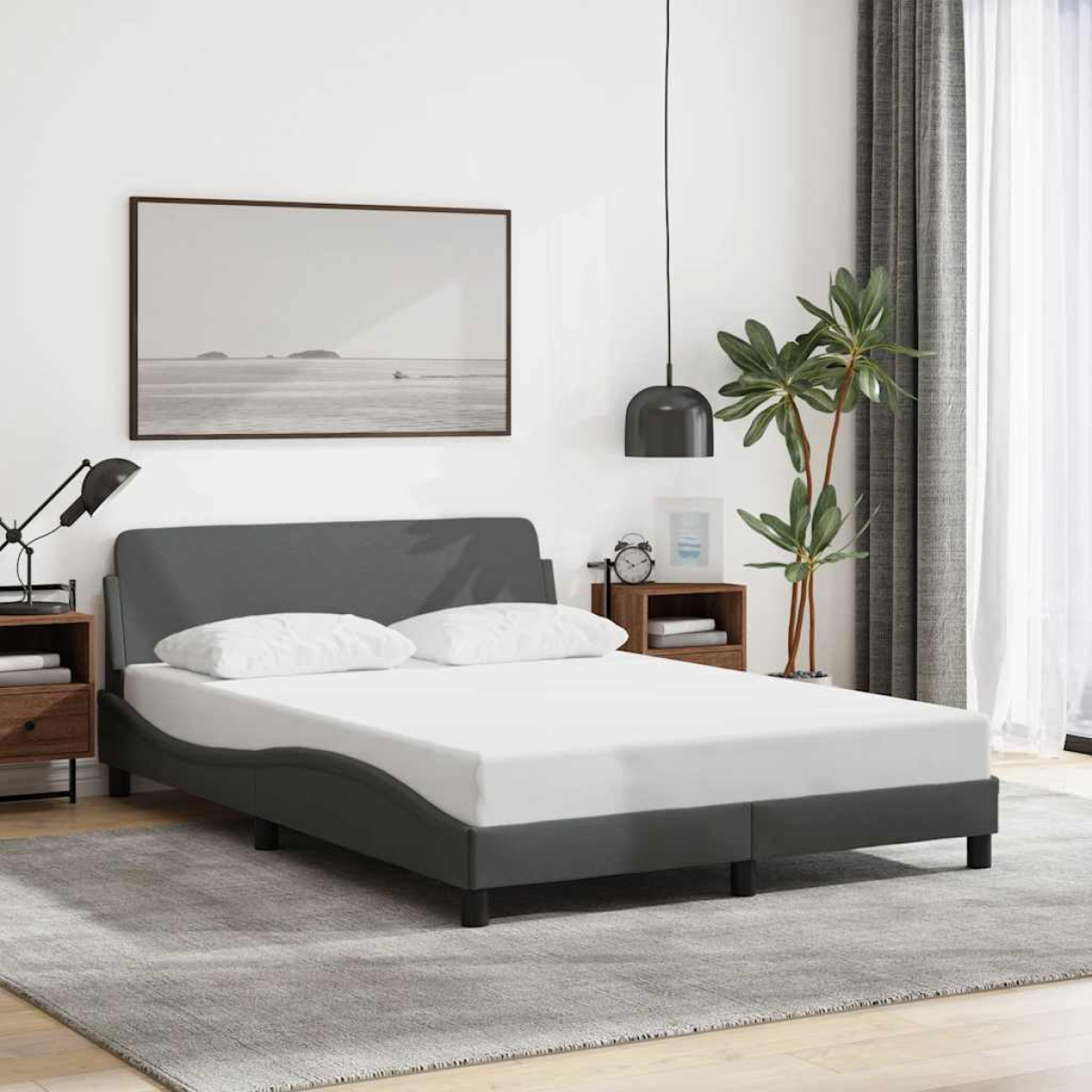 Get a better restful night's sleep from this bed frame with headboard! It makes a welcoming addition to any bedroom. Durable fabric: The fabric features a simple and clean look, and is breathable and durable.Supportive legs: The bed is supported by sturdy legs, which ensure its stability, safety and firmness.Plywood slats: The plywood slats provide good weight distribution, ensuring that the mattress stays in place with every twist and turn of your body during sleep.Excellent support: The bed header provides you with excellent back support while you're sitting up in bed to read or watch TV.Waved side design: The waved look of the bed frame is stylish and sophisticated, adding a modern and elegant touch to your decor, making it the focal point of your bedroom. Good to know:A mattress is not included with this bed. We do offer a various selection of mattresses. You can check our shop for a matching mattress.