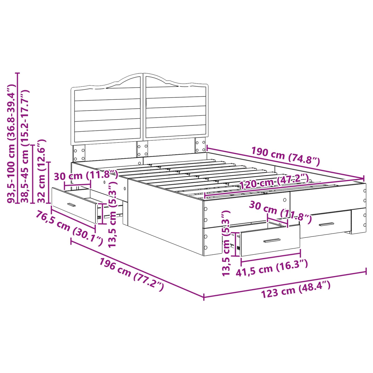 - Headboard Size: 123 x 3 x 100 Dimension_Unit (W x D x H)