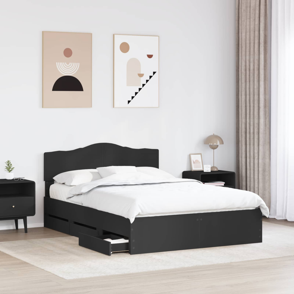 vidaXL Bed Frame with Drawer Black 160 x 200 cm Engineer Wood