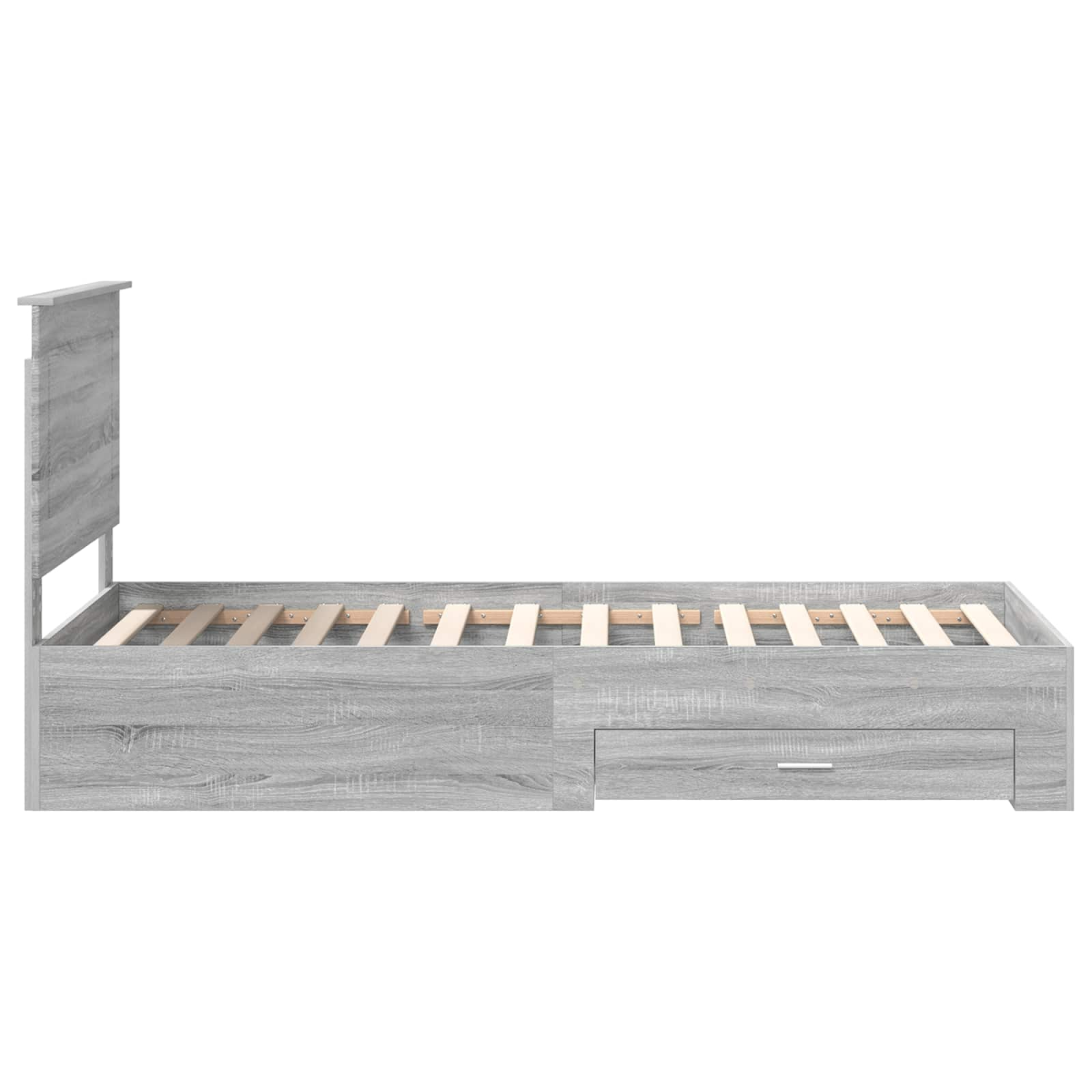 This Rectangular Bed Frame perfectly captures the essence of modern bedroom furniture. Engineered with clean lines and a sleek design, it offers both style and functionality. The bed is designed for those who appreciate simplicity and practicality, proving to be a valuable addition to any bedroom setting. Materials: Constructed from reliable engineered wood, this bed frame provides a robust and enduring structure. Engineered wood is known for its consistency and stability, offering the perfect blend of strength and aesthetic appeal, suitable for creating a minimalist yet refined bedroom atmosphere. Included Components: The bed frame features a functional headboard also made of engineered wood, ensuring both visual appeal and support. Paired with traditional drawers and sleek bar handles in silver, the bed frame epitomizes modern style and practicality, making it a versatile addition for any bedroom. Features /Function /Design: Designed with practicality in mind, the bed frame features ample storage through cleverly integrated drawers, making clutter a thing of the past. Its modern design ensures seamless integration into any contemporary bedroom, reflecting beauty and utility in equal measure. Recommended Uses: Ideal for use in indoor settings only, specifically bedrooms, this bed frame provides a haven of sleep coupled with practical storage solutions, encouraging a tidy and organized space. Its modern style complements a variety of room designs. Care &Maintenance: To retain its pristine appearance, simply wipe with a damp cloth regularly. This low-maintenance cleaning requirement ensures the bed remains as captivating and functional as the day it was assembled, promising long-lasting beauty.