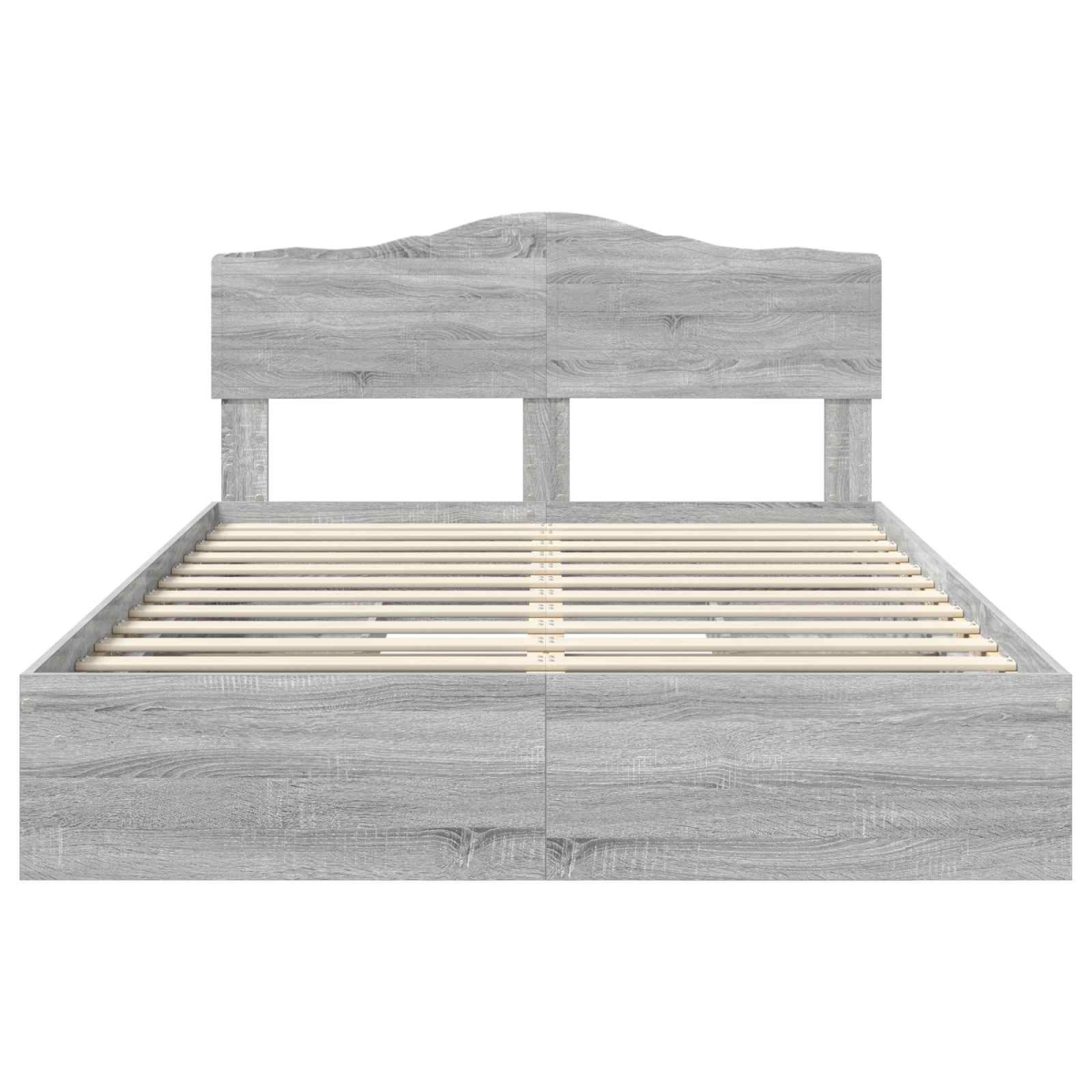This platform bed frame seamlessly merges functionality with modern design, offering a stylish centerpiece for any bedroom. The rectangular shape paired with clean lines lends the bed a sleek, minimalist appearance, perfect for those who appreciate understated elegance. Designed for indoor use, this bed supports a clutter-free aesthetic while providing practical features for your needs. Its engineered wood construction imbues it with a solid presence, ensuring it remains a stalwart part of your bedroom setup. Engineered Wood Frame crafted with attention to detail, this frame offers durable construction that stands up to daily use. The material is chosen for its strength and reliability, providing a stable structure for rest and relaxation. Platform Slatted Base A solid or closely spaced slatted frame design lends ample support to your mattress, eliminating the need for a box spring and ensuring an even sleep surface. Integrated Storage Drawers conveniently located beneath the bed, allowing for practical storage solutions. The traditional handle design ensures easy access and functionality, seamlessly blending convenience with style. Modern Aesthetic characterized by its sleek, minimalist design, the bed complements contemporary interiors, offering a straightforward yet impactful look to your bedroom. Simple Care &Assembly Easy to maintain with a simple wipeable surface that requires minimal upkeep. Assembly is straightforward, requiring two people and a screwdriver, making setup manageable and efficient.