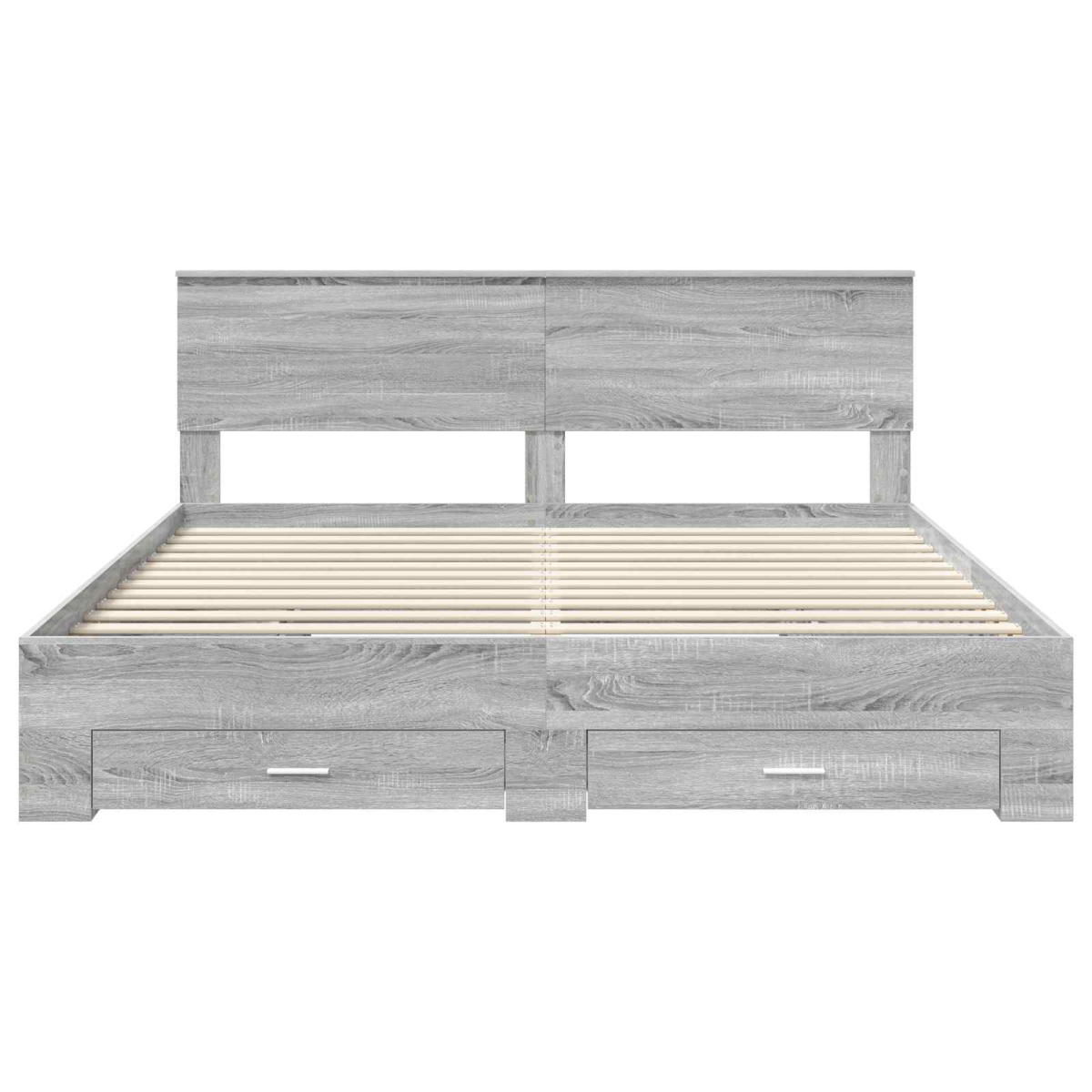 This elegant Modern Storage Bed Frame embodies the simplicity and functionality that defines modern style. Designed for bedrooms that value space and neat aesthetics, the bed frame merges form and function with its sleek lines and understated appearance. Ideal for anyone seeking a balance between style and practicality, this bed frame offers a visual and practical enhancement to your sleeping area. Upon first glance, its clean and minimalist design resonates with modern sensibilities, making it the perfect addition for urban apartments, contemporary homes, and modern bedroom settings. Engineered Wood Construction This bed frame utilizes engineered wood, a material renowned for its stability and resilience. Its modern finish adds a touch of sophistication to any space while ensuring the structure holds steady under everyday use. With this, you get a sleek appearance combined with a robustness that is reliable in every season and setting. Integrated Storage Drawers Designed with storage in mind, this bed features drawers made from the same engineered wood that integrate seamlessly into the bed's design. These drawers offer ample room for keeping linens, clothing, or other items, reducing clutter and optimizing bedroom space. The drawers’ traditional handle design ensures ease of access for all your storage needs. Headboard Included Made from engineered wood, the headboard provides a finished look to the bed frame. As a statement piece, it serves both aesthetics and slight functionality, allowing you to lean back comfortably while reading or watching TV in bed. Its minimalist design compliments the bed's overall modern look, enhancing the bedroom atmosphere. Easy Maintenance &Cleaning The bed’s surface is easy to clean with just a damp cloth, making routine maintenance a breeze. Simple yet practical care instructions ensure your bed frame will continue to look fresh and appealing with minimum effort, letting you enjoy the elegance without the hassle. Convenient Assembly Process Assembly is straightforward and requires just two people and a screwdriver. Every component is well-designed to fit together smoothly, ensuring that setting up your new bed is as effortless and satisfying as possible, contributing to a positive start to your bed’s performance.
