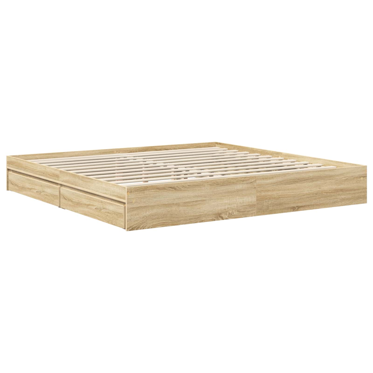 This modern storage bed frame excels in both functionality and design, providing elegance that seamlessly fits into any contemporary bedroom. Its sleek silhouette and tailored appearance embody modern aesthetics while accessible storage solutions minimize clutter. Perfect for those seeking a practical yet stylish addition to their living space, this bed frame provides a blend of competence and allure that enhances any bedroom ensemble. Materials: The bed frame is constructed from high-quality engineered wood, ensuring a stylish yet resilient finish. Engineered wood is known for its durability and smooth surface, offering an aesthetically pleasing appearance that effortlessly complements any interior style. With a water-resistant finish, it provides added protection against moisture and potential spills, guaranteeing lasting performance. Included Components: This bed frame includes a fixed slatted frame designed to offer reliable support for your mattress. The headboard is crafted from engineered wood, adding to its aesthetic appeal and comfort factor. The storage drawer provides a seamless solution for organizing bedroom essentials, facilitating easy access while keeping the room tidy and clutter-free. Features /Function /Design: Designed for modern living, this frame ensures a long-lasting, robust structure capable of supporting all standard mattresses. The water-resistant finish not only enhances durability but also simplifies maintenance. The manual adjustable footboard allows customization to adapt to personal comfort preferences, enriching the overall sleep experience. Recommended Uses: Ideal for bedrooms of diverse sizes, this bed frame serves as a functional centerpiece, especially suited to rooms seeking space optimization with its integrated storage capabilities. Whether used in master suites or guest rooms, it offers both utility and style, catering to various tastes and room configurations. Care &Maintenance: Maintaining this bed frame's pristine appeal is straightforward—simply wipe with a damp cloth to remove any dust or stains. By doing so consistently, the frame retains its lustrous finish and continues to be a centerpiece in your home decor.