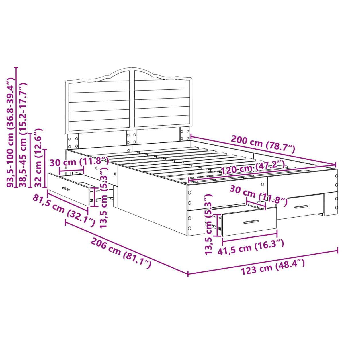 - Headboard Size: 123 x 3 x 100 Dimension_Unit (W x D x H)