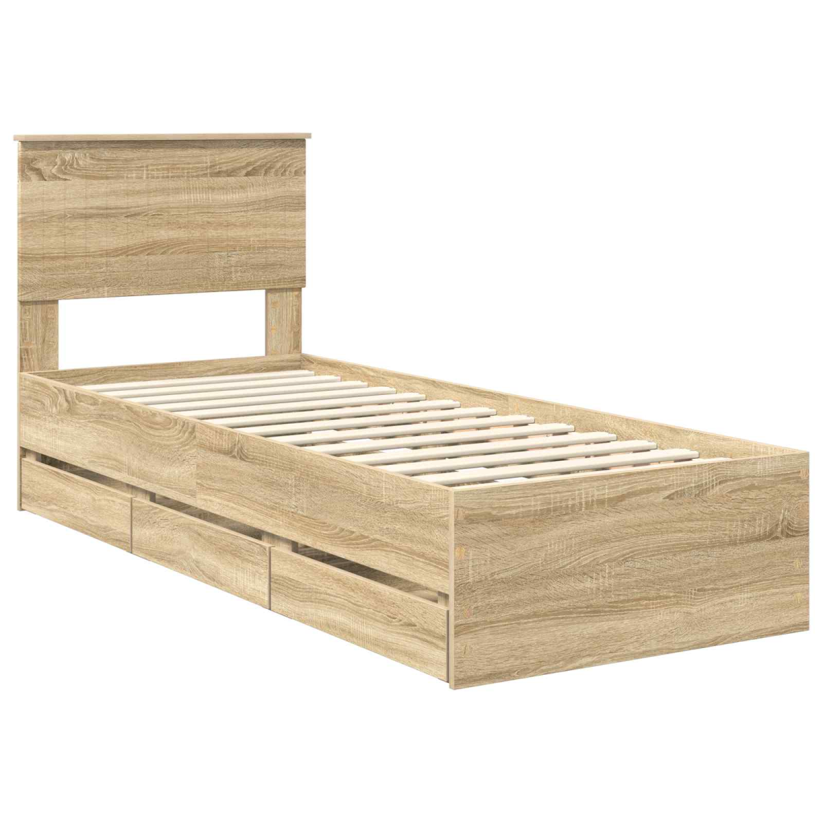 This modern Bed Frame elegantly combines simplicity with functionality, making it a timeless addition to any bedroom. It invites with its clean lines and minimal ornamentation, providing a versatile aesthetic that is ready to complement various style preferences. Ideal for those desiring a fresh and contemporary look, this bed frame serves as a canvas for creative bedding choices, whether bold or subtle. Engineered Wood Craftsmanship : Our bed frame features engineered wood construction that ensures strength and resilience, perfectly resisting wear and tear even in high-use environments. This material promotes lasting style and beauty, providing a reliable foundation for good sleep. Discreet Storage Solutions : It includes hidden drawers ingeniously designed to organize room essentials and keep the space clutter-free. These compartments offer a seamless solution for those who value both aesthetic and practicality, enhancing the overall functionality of the bed frame. Simplicity in Slatted Frame : The frame incorporates a fixed slatted design with wooden slats for reliable support. This provides an excellent base for mattresses, promoting airflow beneath the mattress and ensuring a fresher sleeping experience. Designed for Stability : The square legs provide solid, unwavering support. The contemporary design of the legs complements the minimalist nature of the piece, enhancing stability without sacrificing style. Easy Care : Simply wipe clean with a damp cloth to maintain its pristine condition. This functional piece ensures that care and maintenance are straightforward, preserving its elegance over time.