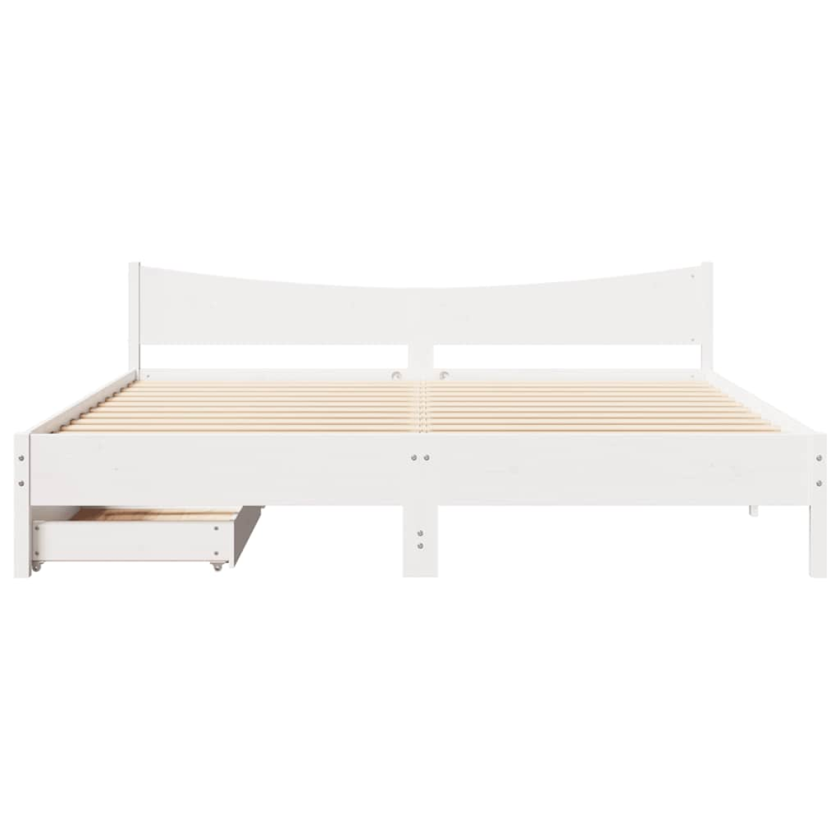 Get a better restful night's sleep from this bed frame! It makes a welcoming addition to any bedroom. Stable and long-lasting frame: Solid pinewood is known for its strength and durability. Its straight grains and distinctive knots contribute to its rustic charm.Slatted base for optimal support: The bed frame is equipped with a slatted base for support and breathability for your mattress.Make full use of space: This bed frame features two drawers underneath, providing storage for items like extra bedding, seasonal clothing, and toys.Effortless manoeuvrability: This under-bed storage drawer features four wheels, providing smooth and effortless manoeuvrability for sliding in and out from beneath your bed. Good to know:A mattress is not included with this bed. We do offer a various selection of mattresses. You can check our shop for a matching mattress.