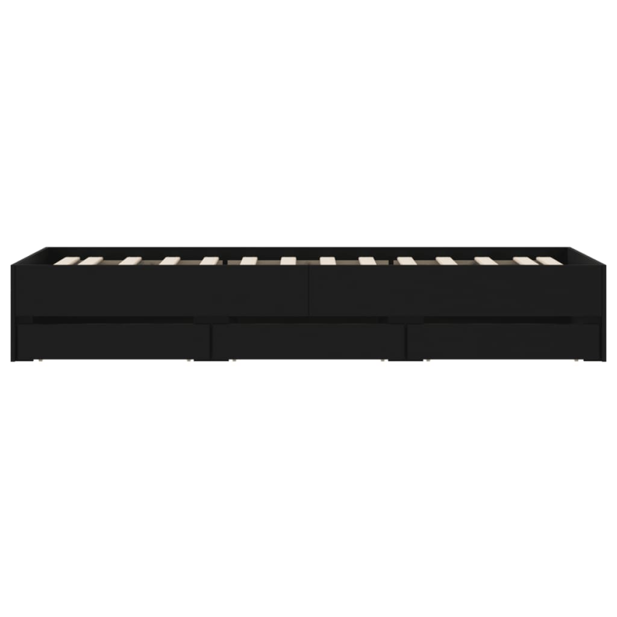 Add a modern touch to your bedroom with this bed frame with drawers! It makes a practical and decorative addition to your living space. Durable material: The bed frame is made of engineered wood. The engineered wood is of exceptional quality with a smooth surface and also features strength, stability, and resistance to moisture.Sturdy slats: The plywood slats provide good weight distribution, ensuring the mattress stays in place with every twist and turn of your body during sleep.Storage function: The included bed drawers provide ample storage space for storing your essentials, keeping your room clean and tidy. Good to know:A mattress is not included with this bed. We do offer a various selection of mattresses. You can check our shop for a matching mattress.