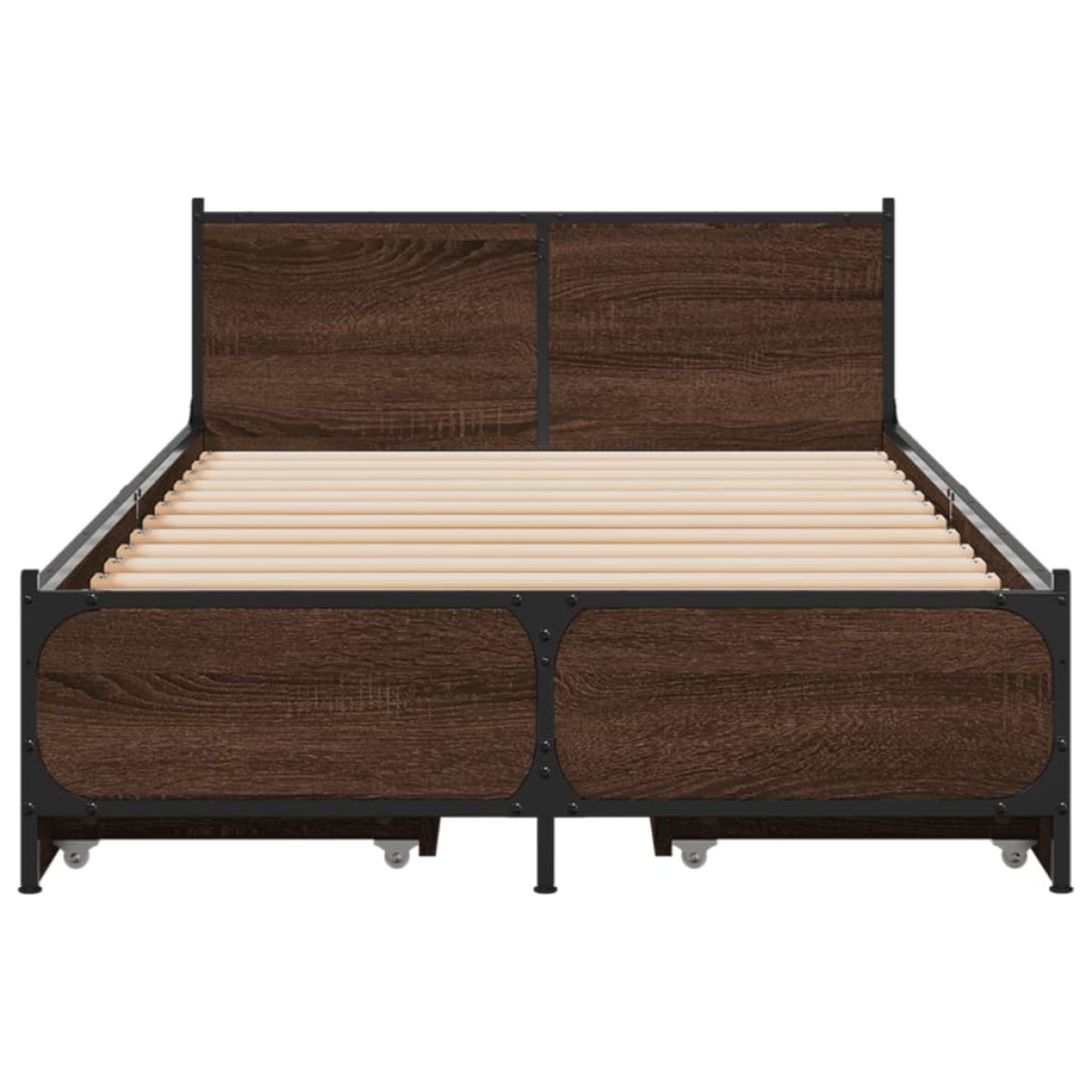 Get a better restful night's sleep from this bed frame with drawers! It makes a welcoming addition to any bedroom. Durable material: The engineered wood is of exceptional quality with smooth surface and also features strength, stability and resistance to moisture. Metal legs: The bed is supported by sturdy metal legs, which ensure its stability, safety and firmness. Plywood slats: The plywood slats provide good weight distribution, ensuring that the mattress stays in place with every twist and turn of your body during sleep. Storage function: The included bed drawers provide ample storage space for storing your essentials, keeping your room clean and tidy. Good to know:A mattress is not included with this bed. We do offer a various selection of mattresses. You can check our shop for a matching mattress.