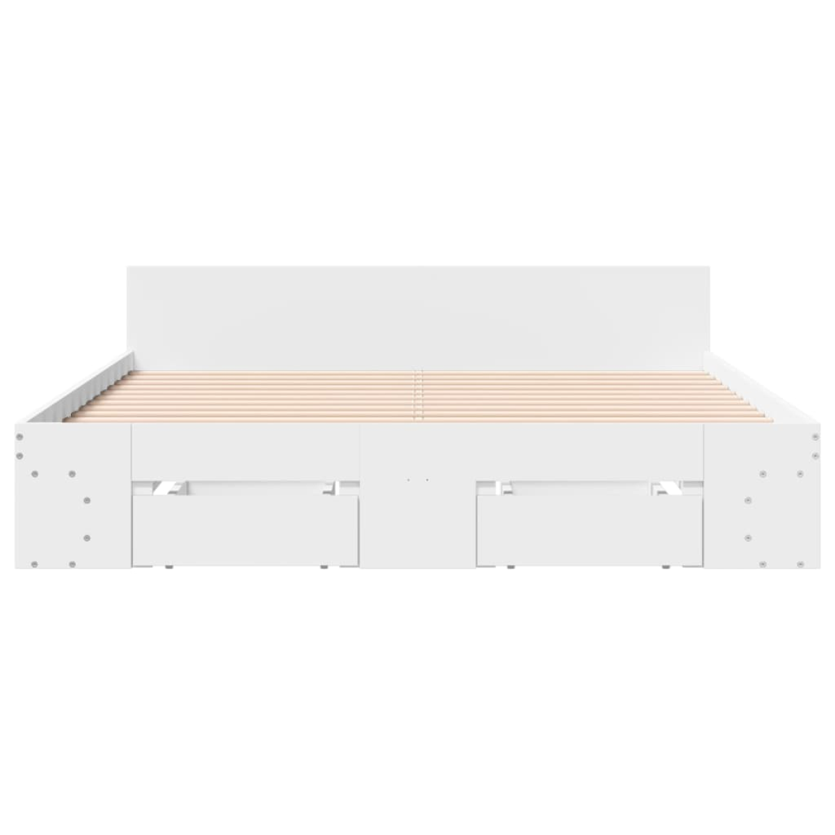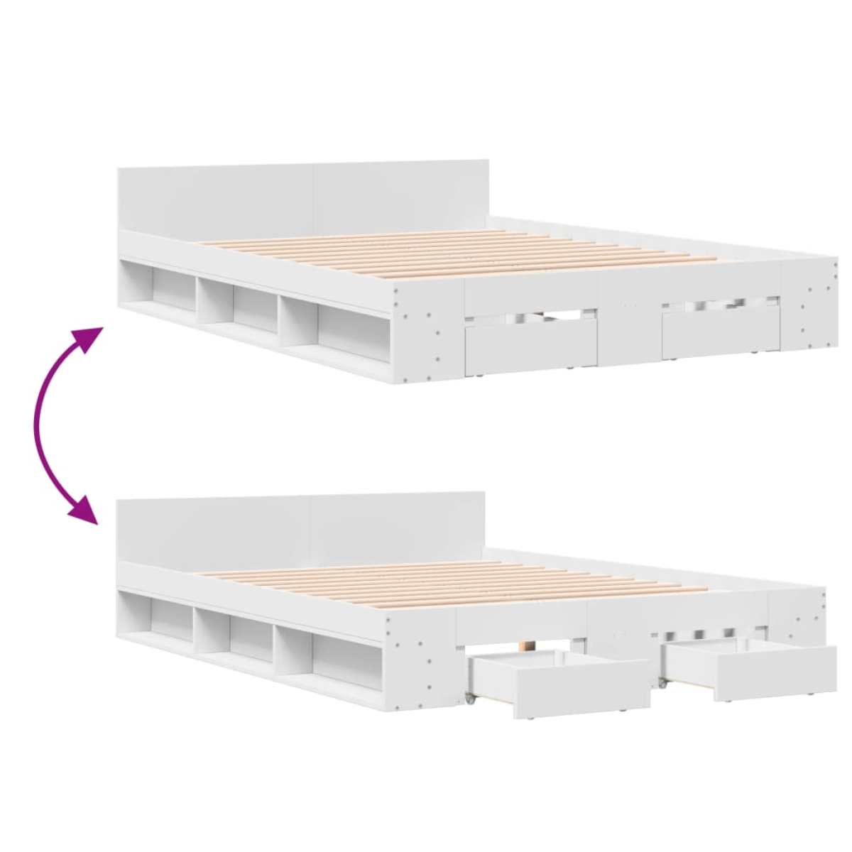 Add a modern touch to your bedroom with this bed frame with drawers! It makes a practical and decorative addition to your living space. Durable material: The bed frame is made of engineered wood. The engineered wood is of exceptional quality with a smooth surface and also features strength, stability, and resistance to moisture.Sturdy slats: The plywood slats provide good weight distribution, ensuring the mattress stays in place with every twist and turn of your body during sleep.Storage function: The included bed drawers and side compartments provide ample storage space for storing your essentials, keeping your room clean and tidy. Good to know:A mattress is not included with this bed. We do offer a various selection of mattresses. You can check our shop for a matching mattress.