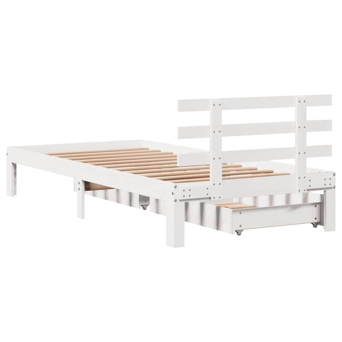 Get a better restful night's sleep from this bed frame! It makes a welcoming addition to any bedroom. Stable and long-lasting frame: Solid pinewood is known for its strength and durability. Its straight grains and distinctive knots contribute to its rustic charm.Slatted base for optimal support: The bed frame is equipped with a slatted base for support and breathability for your mattress.Extra storage space: This bed base features two drawers underneath, providing storage for items like extra bedding, seasonal clothing, and toys.Versatile headboard: This bedstead comes with a headboard that provides excellent back support when you sit up in bed to read or watch TV, while also serving as a decorative element.Effortless manoeuvrability: This under-bed storage drawer features four wheels, providing smooth and effortless manoeuvrability for sliding in and out from beneath your bed. Good to know:A mattress is not included with this bed. We do offer a various selection of mattresses. You can check our shop for a matching mattress.