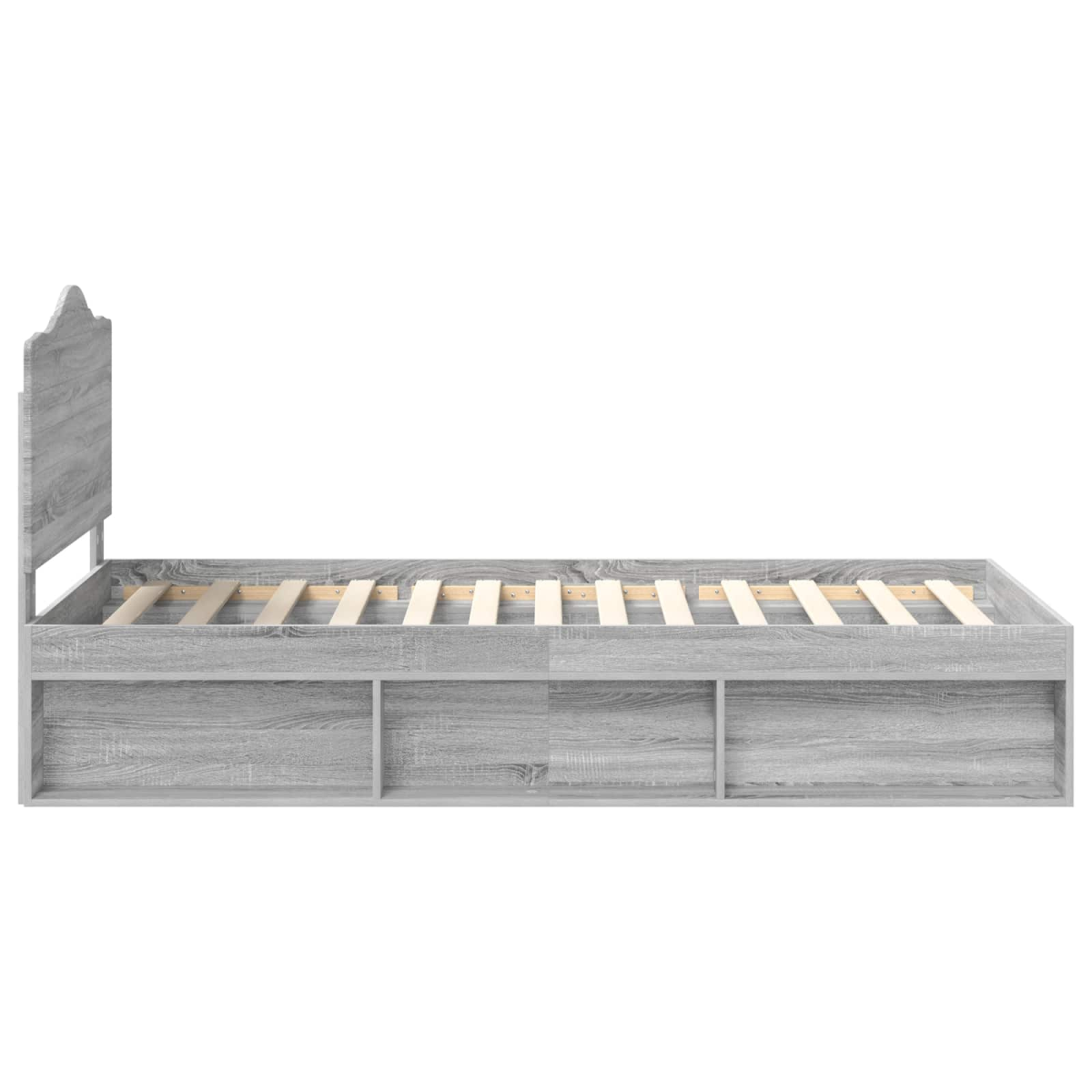 The modern and sophisticated Bed Frame is perfect for anyone looking to add a functional yet stylish piece to their bedroom. Characterized by its minimalist design and clean lines, this frame integrates seamlessly with any contemporary home decor, offering a calm and inviting atmosphere. Crafted from engineered wood, it provides a sturdy and reliable foundation for restful sleep. The addition of a solid pine wood headboard complements the design, ensuring both style and support in one package. Ideal for both adults and children, this Bed Frame promotes restful sleep while enhancing the room's aesthetic. Materials: Constructed from engineered wood, this frame is not only visually appealing but also promises reliability and stability for years to come. Its solid pine wood headboard adds a natural touch, providing a contrast that complements various bedroom styles. These carefully selected materials ensure the bed frame's durability, promising enhanced longevity and resistance to daily wear and tear. Included Components: The bed comes with a solid pine wood headboard and a fixed slatted frame, ensuring both style and support. The non-flexible slats offer a rigid foundation ideal for those desiring a stable sleep surface, while the headboard provides added comfort and style above the mattress, making it a central feature of any room arrangement. Features /Function /Design: Embracing a modern style characterized by functionality and simplicity, the bed frame boasts clean lines and minimal ornamentation. Designed for those who value practicality, it provides a reliable and substantial foundation for a mattress without unnecessary bulk. Its sleek design fits seamlessly into contemporary environments, enhancing its surroundings. Recommended Uses: Tailored for indoor use in the bedroom, this bed frame suits various living situations, from master suites to guest rooms. Its adaptable design makes it suitable for adults, teenagers, and children, fitting effortlessly into both small apartments and larger homes. Care &Maintenance: Maintaining its pristine appearance is made simple with straightforward care instructions. A quick wipe with a damp cloth removes dust and grime, allowing the bed frame to retain its original charm. Regular maintenance ensures the bed remains a centerpiece, combining aesthetics with functionality.