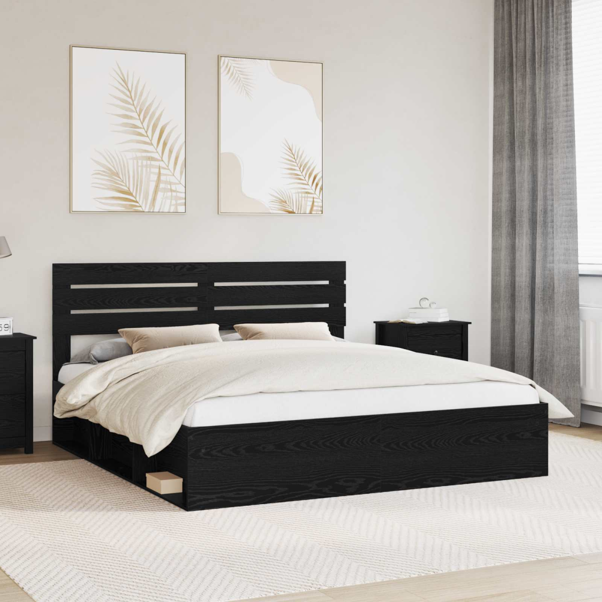 vidaXL Bed Frame with Headboard Black 200 x 200 cm Solid Pine Wood