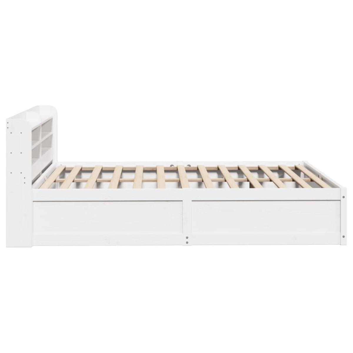 Get a better restful night's sleep from this bed frame! It makes a welcoming addition to any bedroom. Stable and long-lasting frame: Solid pinewood is known for its strength and durability. Its straight grains and distinctive knots contribute to its rustic charm.Slatted base for optimal support: The bed frame is equipped with a slatted base for support and breathability for your mattress.Ample storage space: This sleek headboard of the bed features three convenient shelves, offering ample storage space to keep all your nighttime essentials within easy reach.Freestanding headboard: The freestanding headboard offers a hassle-free solution for effortless placement and repositioning without the need for wall installation. Good to know:A mattress is not included with this bed. We do offer a various selection of mattresses. You can check our shop for a matching mattress.