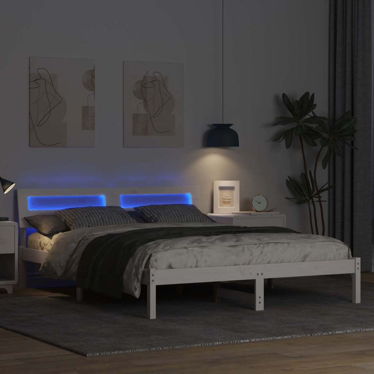 This platform bed frame with headboard offers a sleek and modern addition to your bedroom. Constructed from solid pine wood, it features a rectangular shape with smooth textures that enhance its visual appeal. The bed fits seamlessly into any minimalist or contemporary setting, providing a sturdy and reliable support for your mattress, adding a touch of elegance and simplicity to your sleep space. Solid Pine Construction This bed frame is crafted from solid pine wood, known for its durability and excellent performance under daily use. Its robust nature offers confidence, ensuring you have a stable foundation for your mattress. The wood’s natural grain patterns and rich tones add an aesthetic value to any bedroom setting, enhancing its overall appeal. Platform Slatted Frame Experience the even support offered by the platform slatted frame, designed to keep your mattress in optimal condition and prevent sagging. The closely spaced slats eliminate the need for a box spring, providing a firm surface that promotes restful sleep while reducing noise related to movement. Modern Simplicity The design showcases clean lines and minimal ornamentation, catering to modern tastes while providing aesthetic consistency to contemporary rooms. Its minimalist appeal allows easy integration into varying décor styles, accommodating changes in your design preferences over time. USB Power Source Equipped with convenient USB power options, this bed frame serves modern digital needs, keeping your devices powered. Eliminate the hassle of extra cables and stay organized. Simple Maintenance Caring for your bed is never a chore, as it requires only a damp cloth for cleaning. This feature ensures your bed frame maintains its original finish and quality for years to come, offering lasting beauty with minimal effort.