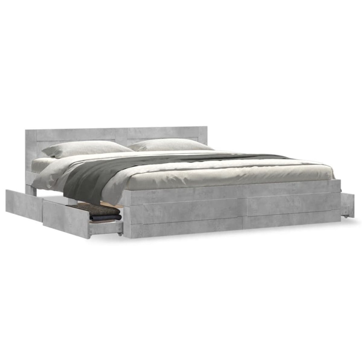 vidaXL Bed Frame with Headboard without Mattress Concrete Grey 180x200 cm Super King