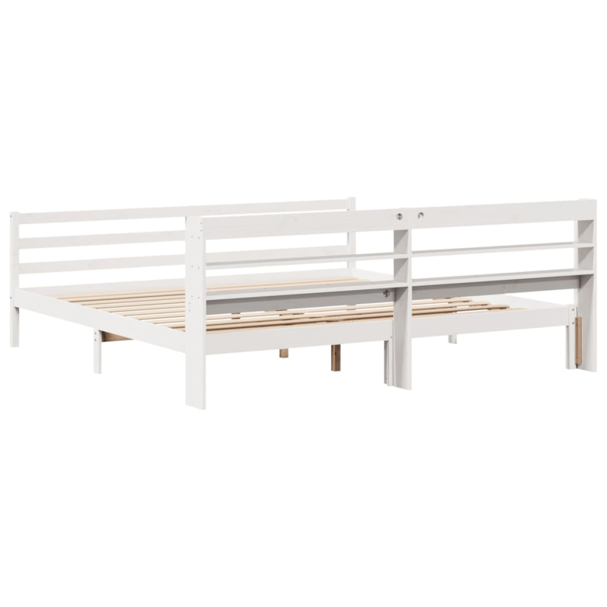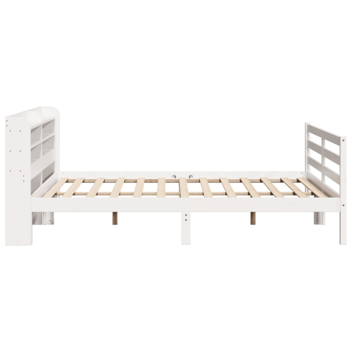 Enjoy a good night's sleep in this wooden bed frame! It makes a practical and decorative addition to your interior. Solid pine wood: Solid pine wood is a beautiful natural material. Pine wood has a straight grain, and the knots give the material its signature, rustic look.Practical slats: The slats provide good weight distribution, ensuring your mattress with much-needed support and breathability.Ample storage space: This sleek headboard of the bed features two convenient shelves, offering ample storage space to keep all your nighttime essentials within easy reach.Freestanding headboard: The freestanding headboard offers a hassle-free solution for effortless placement and repositioning without the need for wall installation. Good to know: A mattress is not included with this bed. We do offer a various selection of mattresses. You can check our shop for a matching mattress.