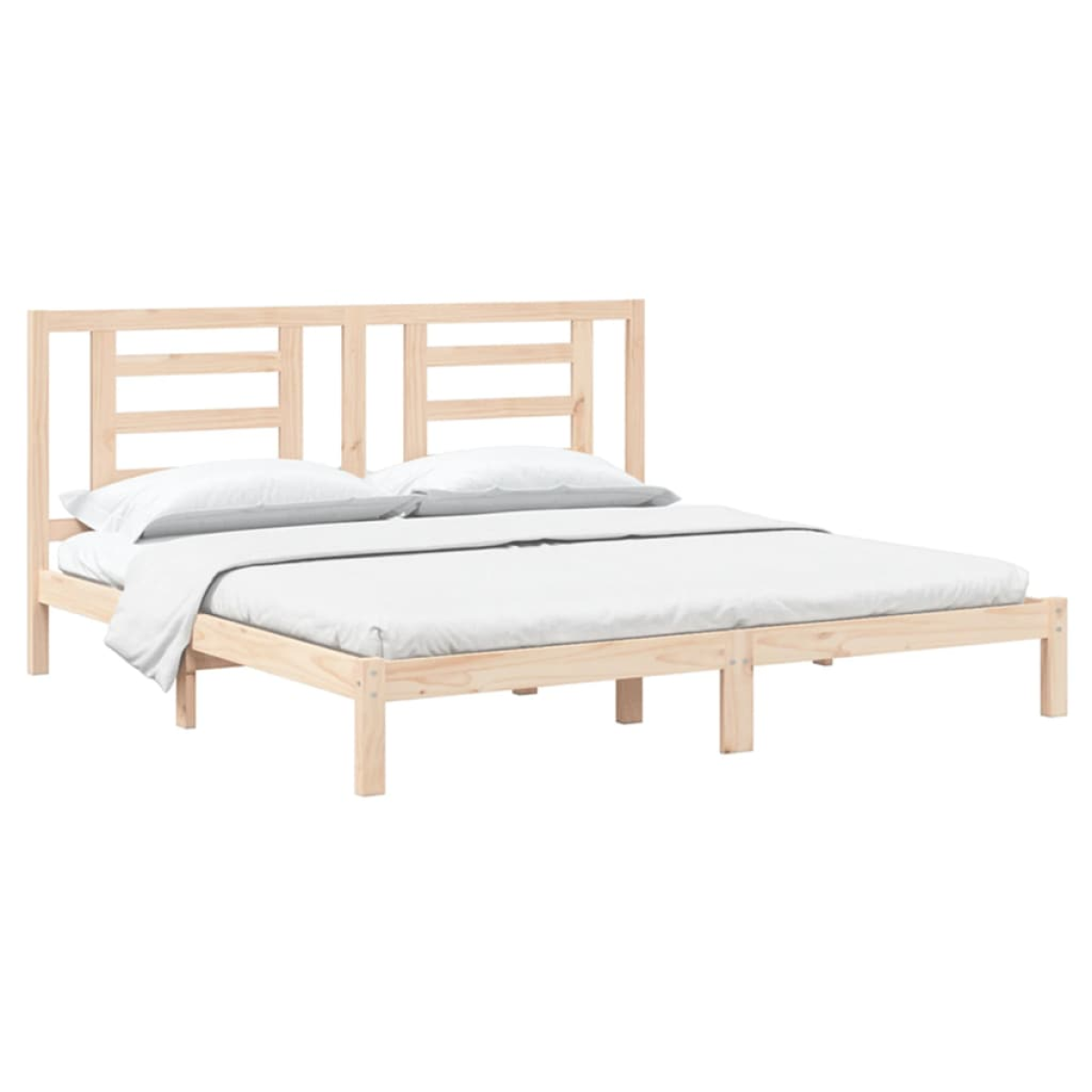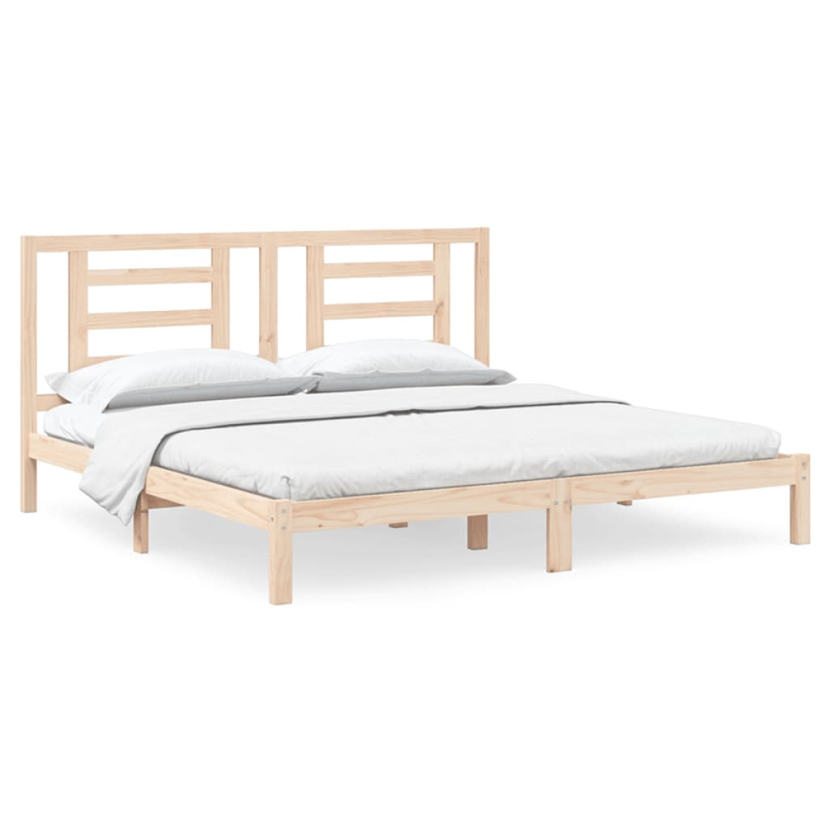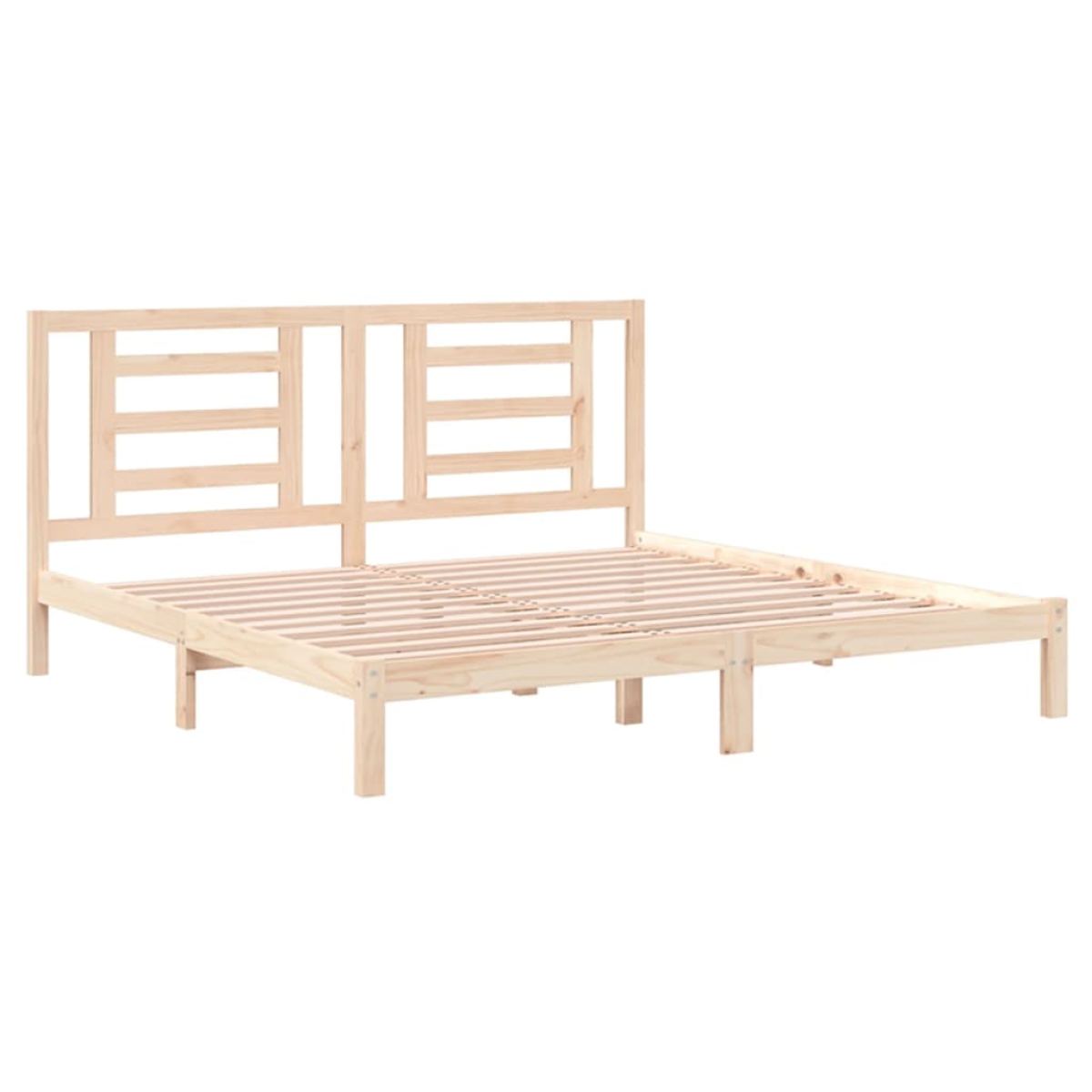 Take the modern route to your bedroom with this wooden bed frame! It makes a practical and decorative addition to your interior. Premium material: Solid pine wood is a beautiful natural material. Pine wood has a straight grain, and the knots give the material its signature, rustic look.Sturdy and stable frame: The wooden frames ensure sturdiness and stability.Comfortable headboard: The classic headboard let you rest comfortably while reading or watching a movie.Eye-catching design: The headboard design is decorative and practical. It adds a unique style and comfort. Good to know:The delivery includes a bed frame only. The mattress is not included. You can check our shop for the matching mattresses.Some headboard parts are packaged in the bed frame cartons due to space limitations.This bed frame is suitable for a mattress measuring 200x200 cm.