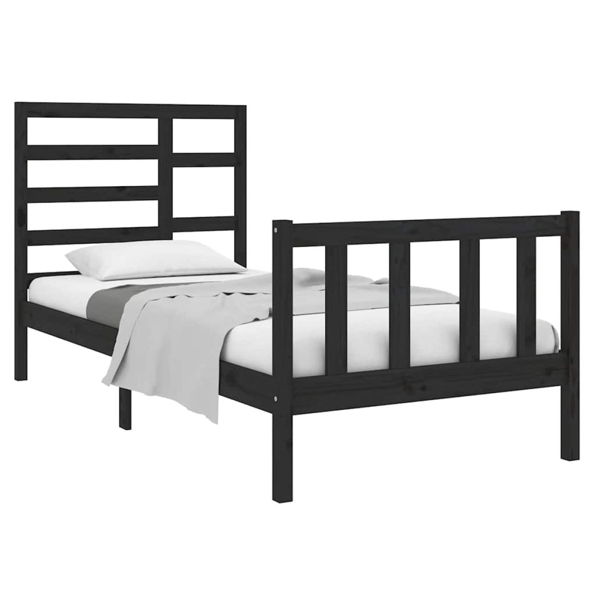 Take the modern route to your bedroom with this wooden bed frame! It makes a practical and decorative addition to your interior. Premium solid wood: Solid pine wood is a beautiful natural material. Pine wood has a straight grain, and the knots give the material its signature, rustic look.Sturdy bed frame: The wooden frame ensures sturdiness and stability. The plywood slats provide good weight distribution, ensuring that the mattress stays in place with every twist and turn of your body during sleep.Eye-catching design: The headboard and footboard design is both decorative and practical. It adds a unique style and comfort.Suitable condition: This single bed is a great solution for small spaces, multi-functional rooms, single sleepers and older children. Whatever your needs or decor plans are, the single bed meets all your needs! Good to know:The delivery includes a bed frame only. The mattress is not included. You can check our shop for the matching mattresses.Some headboard parts are packaged in the bed frame cartons due to space limitations.This bed frame is suitable for a mattress measuring 75 x 190 cm (2FT6 Small Single).