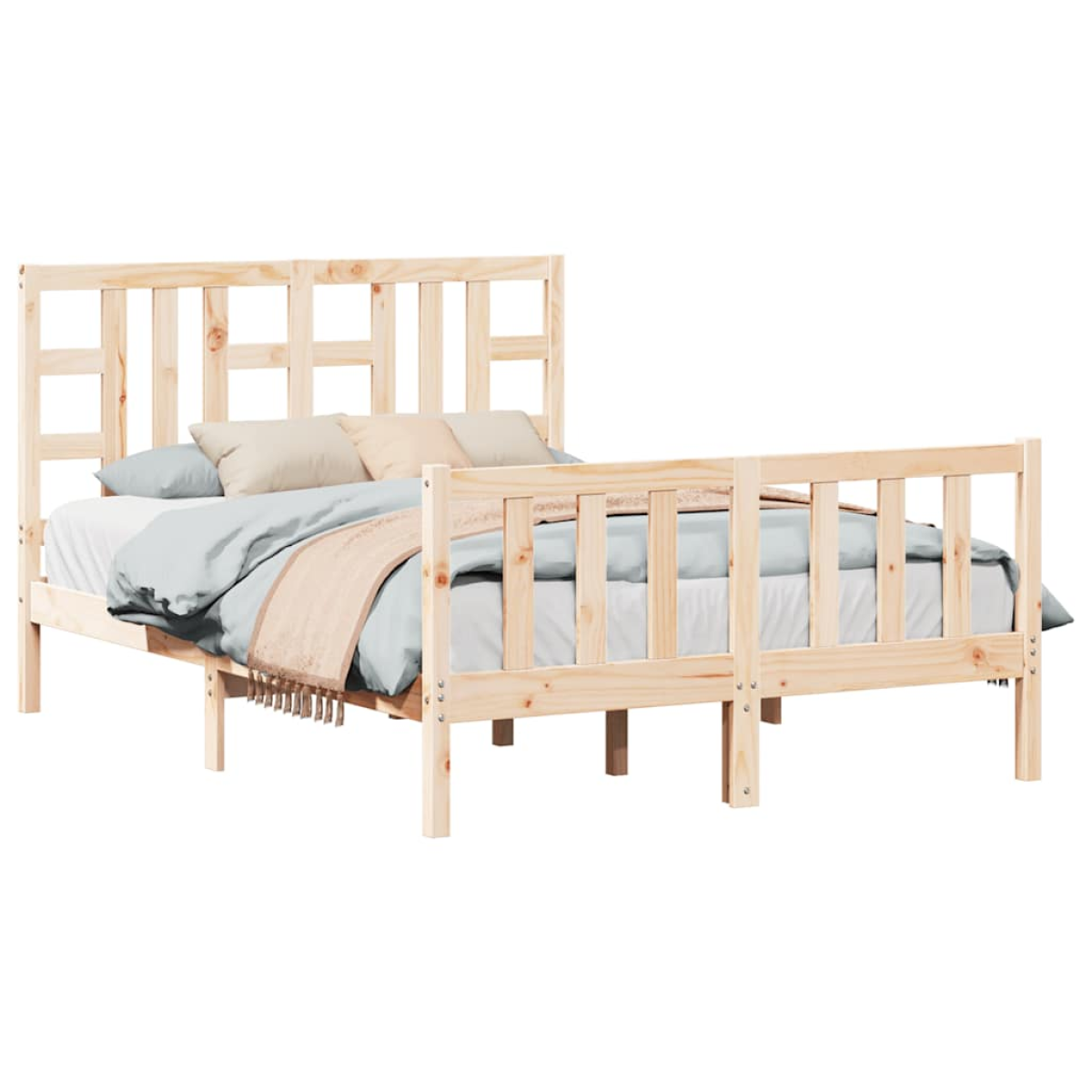 Enjoy a good night's sleep in this wooden bed frame! It makes a practical and decorative addition to your interior. Durable material: Solid pine wood is a beautiful natural material. Pine wood has a straight grain, and the knots give the material its signature, rustic look. Made of solid pinewood, this bed is sturdy and durable.Plywood slats: The plywood slats provide good weight distribution, ensuring your mattress with much-needed support and breathability.Functional headboard and footboard: The headboard and footboard of the wooden bed can keep your mattress in place. Also, the headboard provides you with excellent back support when you sit up in bed to read or watch TV. Good to know: A mattress is not included with this bed. We do offer a various selection of mattresses. You can check our shop for a matching mattress.