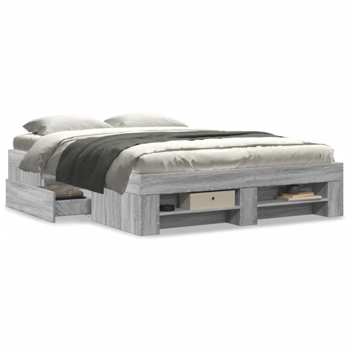 Get a better restful night's sleep from this bed frame! It makes a welcoming addition to any bedroom. Durable material: The bed frame is made of engineered wood. The engineered wood is of exceptional quality with a smooth surface and also features strength, stability, and resistance to moisture.Slatted base for optimal support: The bed frame is equipped with a slatted base for support and breathability for your mattress.Storage function: This bed frame offers drawers and open compartments for keeping your magazines, books, toys and other small items well-organised. Good to know:A mattress is not included with this bed. We do offer a various selection of mattresses. You can check our shop for a matching mattress.