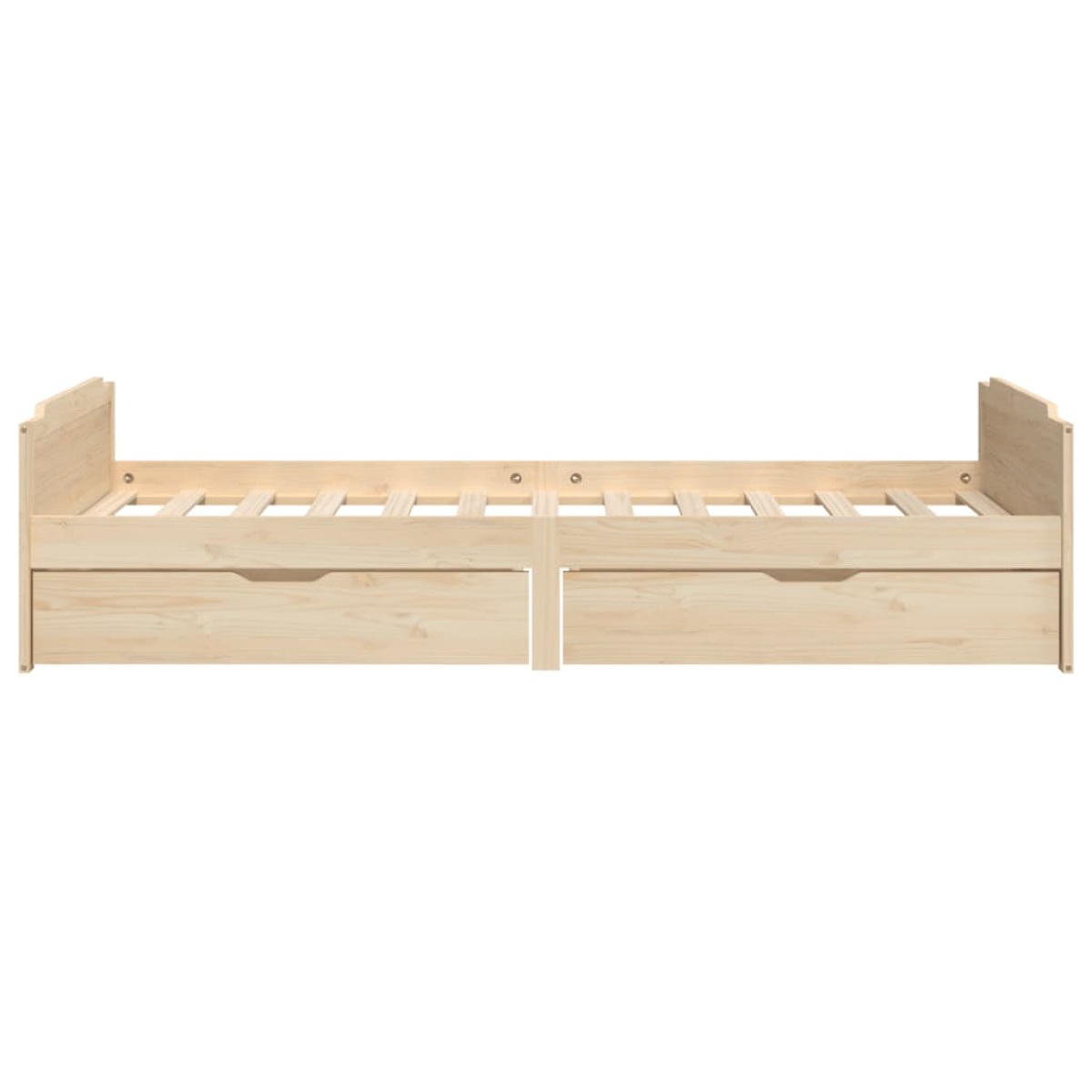 This bed frame is a practical and decorative addition to your bedroom. Premium material: Solid pine wood is a beautiful natural material. Pine wood has a straight grain, and the knots give the material its signature, rustic look.Sturdy slats: The sturdy slats offer the needed support and comfort. You can enjoy great sleeping experience every night on this bed!Storage function: The included bed drawers provide ample storage space for storing your essentials, keeping your room clean and tidy. Note:The delivery includes the bed frame only. Mattresses are not included. You can check our shop for the matching mattresses.