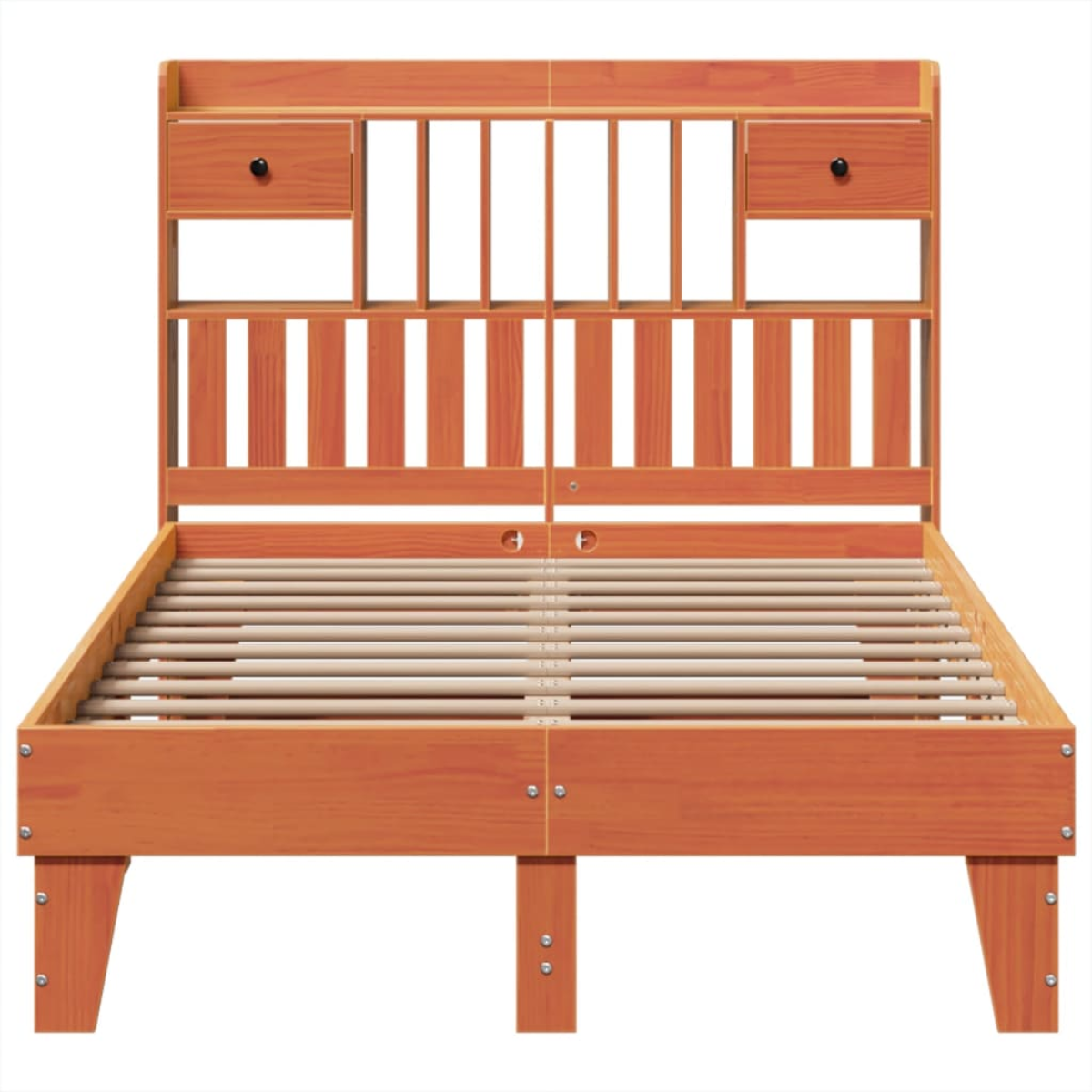 Get a better restful night's sleep from this bed frame! It makes a welcoming addition to any bedroom. Stable and long-lasting frame: Solid pinewood is known for its strength and durability. Its straight grains and distinctive knots contribute to its rustic charm.Slatted base for optimal support: The bed base is equipped with a slatted base for support and breathability for your mattress.Extra storage space: This sleek headboard features 6 convenient compartments and 2 drawers, offering ample storage space to keep all your nighttime essentials within easy reach. For convenience, the wooden bed has an extra space underneath to keep your storage boxes out of sight.Stable and durable feet: This bedstead is supported by sturdy feet, ensuring stability, safety, and firmness.Freestanding headboard: The freestanding headboard offers a hassle-free solution for effortless placement and repositioning without the need for wall installation. Good to know:A mattress is not included with this bed. We do offer a various selection of mattresses. You can check our shop for a matching mattress.