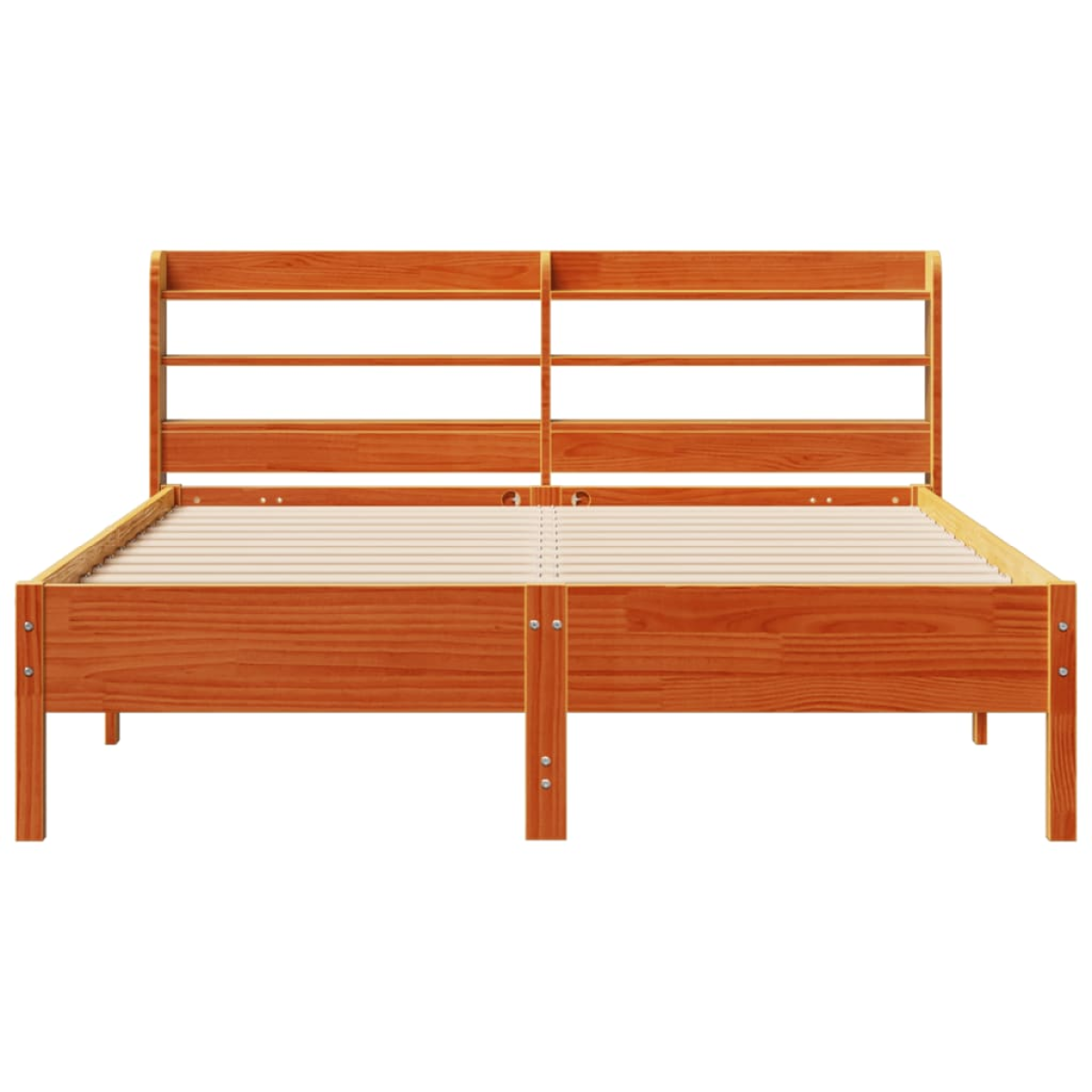 Get a better restful night's sleep from this bed frame! It makes a welcoming addition to any bedroom. Stable and long-lasting frame: Solid pinewood is known for its strength and durability. Its straight grains and distinctive knots contribute to its rustic charm.Slatted base for optimal support: The bed frame is equipped with a slatted base for support and breathability for your mattress.Versatile headboard: This bed frame comes with a headboard that provides excellent back support when you sit up in bed to read or watch TV, while also serving as a decorative element.Ample storage space: This sleek headboard features three convenient shelves, offering ample storage space to keep all your nighttime essentials within easy reach. Good to know:A mattress is not included with this bed. We do offer a various selection of mattresses. You can check our shop for a matching mattress.