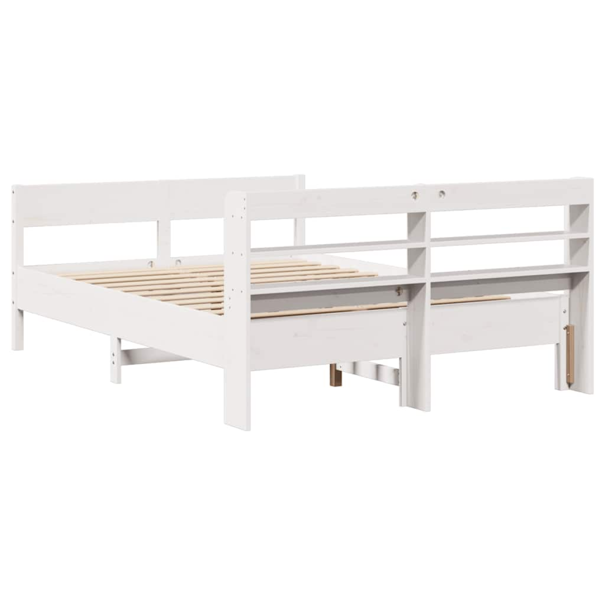 Get a better restful night's sleep from this bed frame! It makes a welcoming addition to any bedroom. Stable and long-lasting frame: Solid pinewood is known for its strength and durability. Its straight grains and distinctive knots contribute to its rustic charm.Slatted base for optimal support: The bed frame is equipped with a slatted base for support and breathability for your mattress.Versatile headboard: This bed frame comes with a headboard that provides excellent back support when you sit up in bed to read or watch TV, while also serving as a decorative element.Ample storage space: This sleek headboard features three convenient shelves, offering ample storage space to keep all your nighttime essentials within easy reach. Good to know:A mattress is not included with this bed. We do offer a various selection of mattresses. You can check our shop for a matching mattress.
