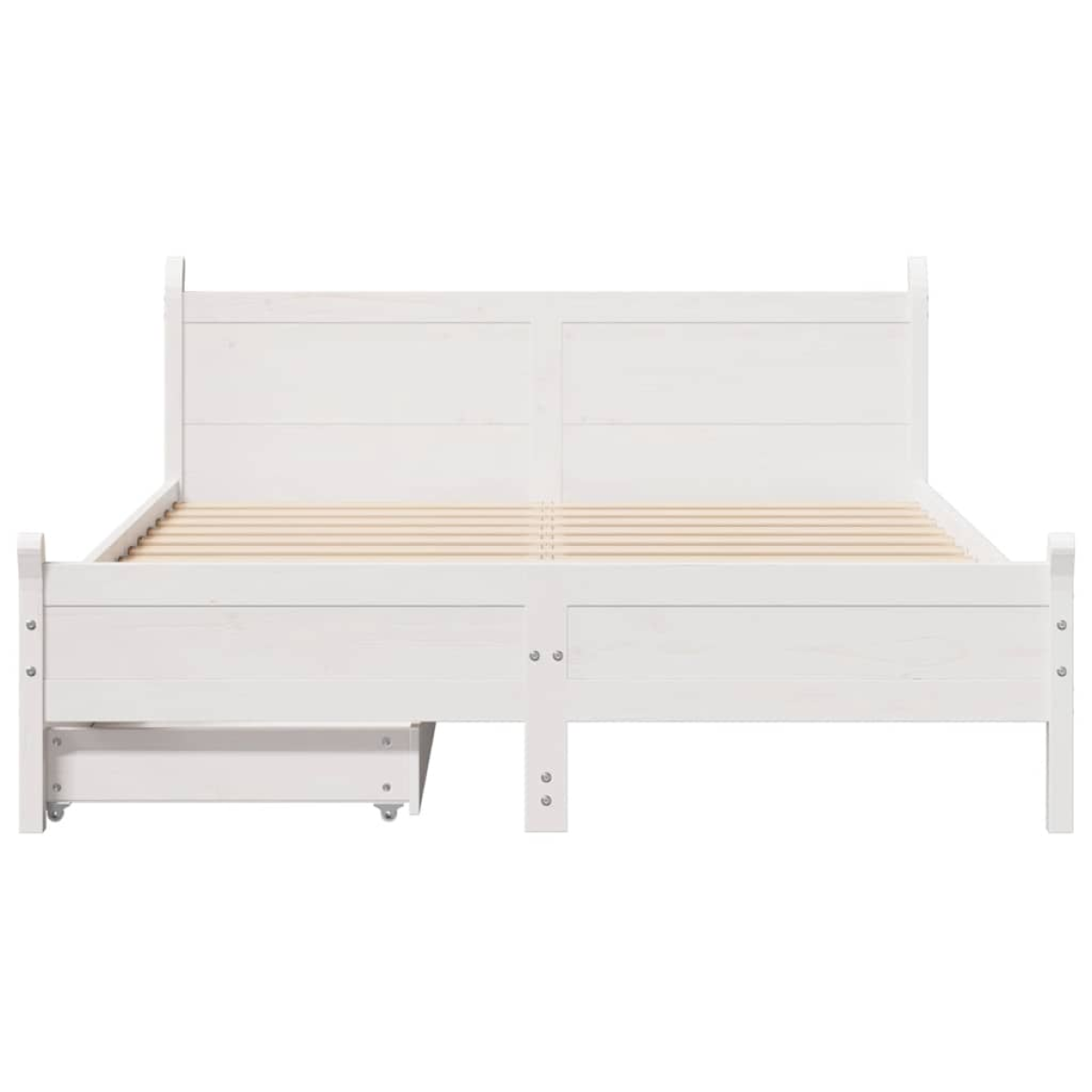 Get a better restful night's sleep from this bed frame! It makes a welcoming addition to any bedroom. Stable and long-lasting frame: Solid pinewood is known for its strength and durability. Its straight grains and distinctive knots contribute to its rustic charm.Slatted base for optimal support: The bed base is equipped with a slatted base for support and breathability for your mattress.Effortless manoeuvrability: This under-bed storage drawer features four wheels, providing smooth and effortless manoeuvrability for sliding in and out from beneath your bed.Stable and durable feet: This bedstead is supported by sturdy feet, ensuring stability, safety, and firmness.Versatile headboard: This panel bed comes with a headboard that provides excellent back support when you sit up in bed to read or watch TV, while also serving as a decorative element. Good to know:A mattress is not included with this bed. We do offer a various selection of mattresses. You can check our shop for a matching mattress.