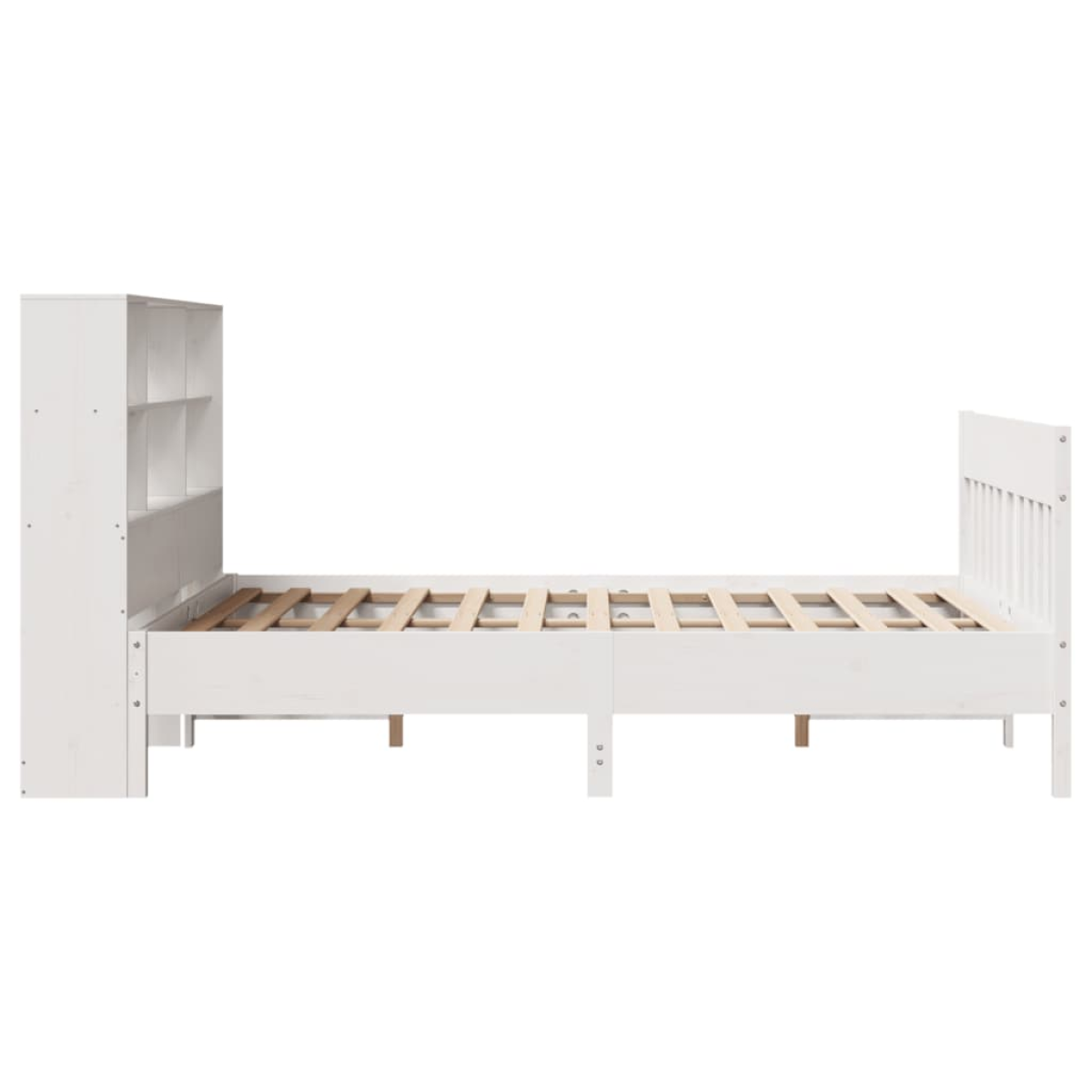 Enjoy a good night’s sleep in this wooden bed frame! It makes a practical and decorative addition to your interior. Solid pine wood: Solid pine wood is a beautiful natural material. Pine wood has a straight grain, and the knots give the material its signature, rustic look.Plywood slats: The plywood slats provide good weight distribution, ensuring that the mattress stays in place with every twist and turn of your body during sleep.Excellent support: The headboard of the wooden bed provides you with excellent back support when you sit up in bed to read or watch TV.Ample storage space: This sleek headboard features six convenient compartments, offering ample storage space to keep all your nighttime essentials within easy reach.Functional headboard and footboard: The headboard and footboard of the bed base keep your mattress in place. Also, the headboard provides you with excellent back support when you sit up in bed to read or watch TV. Good to know:Mattresses are not included with this bed. We do offer a various selection of mattresses. You can check our shop for matching mattresses.