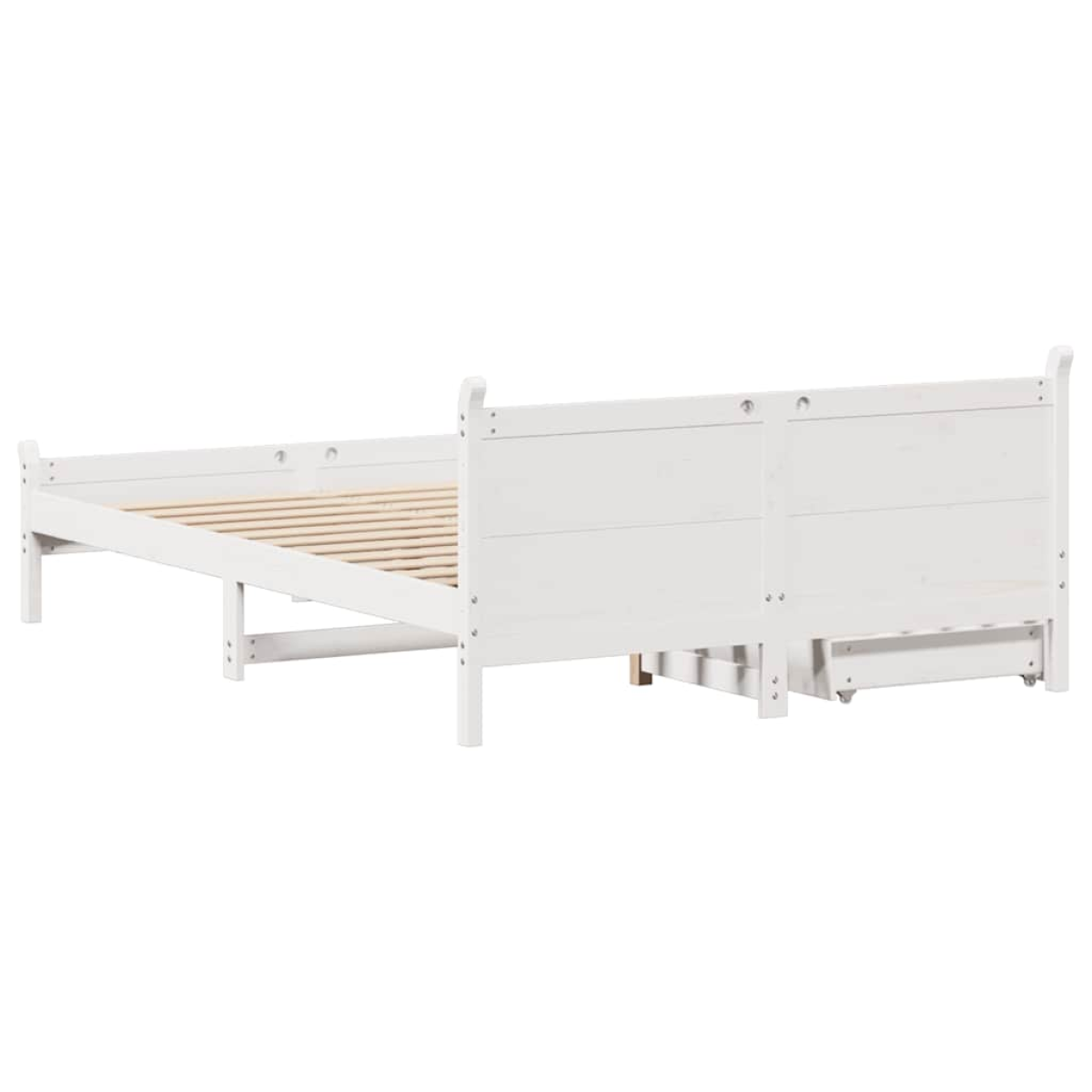 Get a better restful night's sleep from this bed frame! It makes a welcoming addition to any bedroom. Stable and long-lasting frame: Solid pinewood is known for its strength and durability. Its straight grains and distinctive knots contribute to its rustic charm.Slatted base for optimal support: The bed base is equipped with a slatted base for support and breathability for your mattress.Effortless manoeuvrability: This under-bed storage drawer features four wheels, providing smooth and effortless manoeuvrability for sliding in and out from beneath your bed.Stable and durable feet: This bedstead is supported by sturdy feet, ensuring stability, safety, and firmness.Versatile headboard: This panel bed comes with a headboard that provides excellent back support when you sit up in bed to read or watch TV, while also serving as a decorative element. Good to know:A mattress is not included with this bed. We do offer a various selection of mattresses. You can check our shop for a matching mattress.