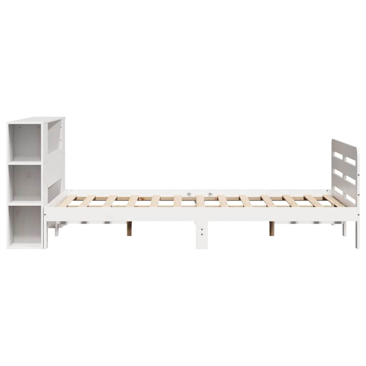 Get a better restful night's sleep from this bed frame! It makes a welcoming addition to any bedroom. Stable and long-lasting frame: Solid pinewood is known for its strength and durability. Its straight grains and distinctive knots contribute to its rustic charm.Make full use of space: With 7 convenient compartments, this headboard is a space-saving option that can replace the need for a bedside table, helping maximise your bedroom space, and making it ideal for small or limited spaces.Versatile headboard: This bed frame comes with a headboard that provides excellent back support when you sit up in bed to read or watch TV, while also serving as a decorative element.Slatted base for optimal support: The bed frame is equipped with a slatted base for support and breathability for your mattress. Good to know:A mattress is not included with this bed. We do offer a various selection of mattresses. You can check our shop for a matching mattress.