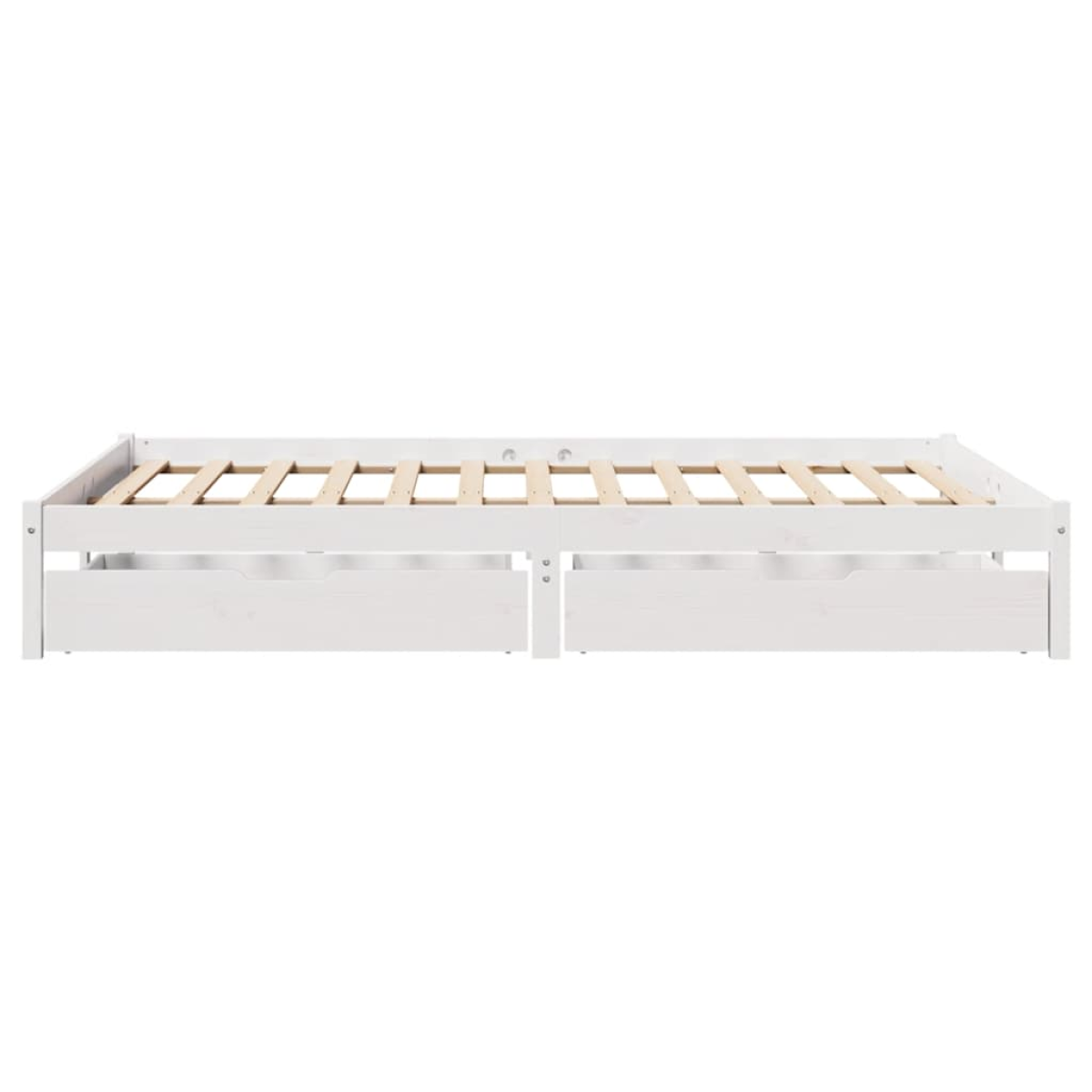 Get a better restful night's sleep from this bed frame! It makes a welcoming addition to any bedroom. Stable and long-lasting frame: Solid pinewood is known for its strength and durability. Its straight grains and distinctive knots contribute to its rustic charm.Slatted base for optimal support: The bed frame is equipped with a slatted base for support and breathability for your mattress.Make full use of space: This bed frame features two drawers underneath, providing storage for items like extra bedding, seasonal clothing, and toys.Effortless manoeuvrability: This under-bed storage drawer features four wheels, providing smooth and effortless manoeuvrability for sliding in and out from beneath your bed. Good to know:A mattress is not included with this bed. We do offer a various selection of mattresses. You can check our shop for a matching mattress.