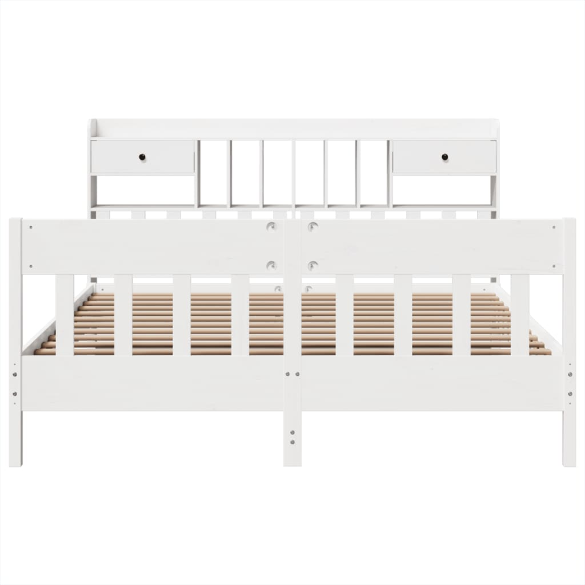 Enjoy a good night’s sleep in this wooden bed frame! It makes a practical and decorative addition to your interior. Stable and long-lasting frame: Solid pinewood is known for its strength and durability. Its straight grains and distinctive knots contribute to its rustic charm.Slatted base for optimal support: The bed base is equipped with a slatted base for support and breathability for your mattress.Extra storage space: This sleek headboard features 6 convenient compartments and 2 drawers, offering ample storage space to keep all your nighttime essentials within easy reach. For convenience, the wooden bed has an extra space underneath to keep your storage boxes out of sight.Stable and durable feet: This bedstead is supported by sturdy feet, ensuring stability, safety, and firmness.Functional headboard and footboard: The headboard and footboard of the bed base keep your mattress in place. Also, the headboard provides you with excellent back support when you sit up in bed to read or watch TV. Good to know:A mattress is not included with this bed. We do offer a various selection of mattresses. You can check our shop for a matching mattress.