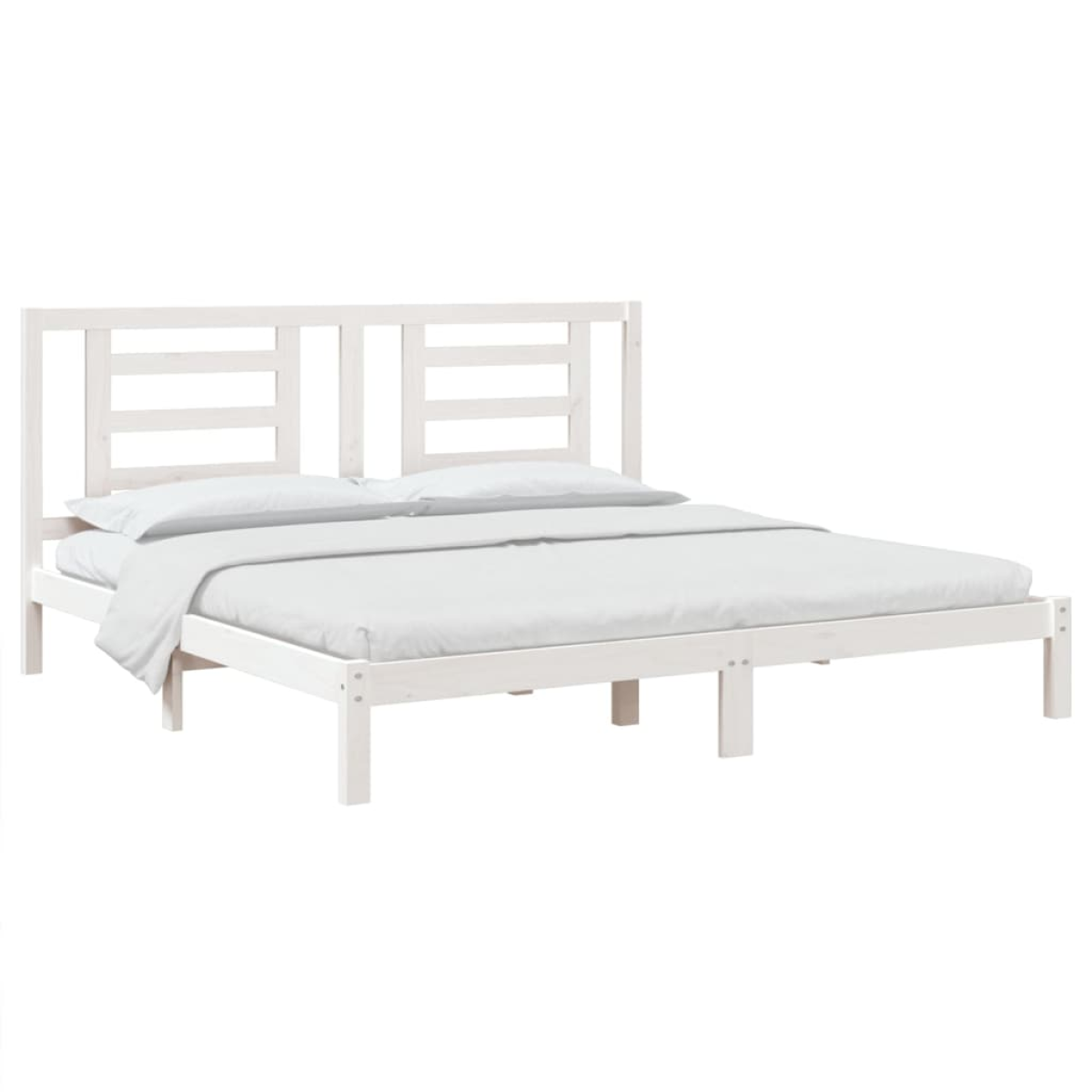 Take the modern route to your bedroom with this wooden bed frame! It makes a practical and decorative addition to your interior. Premium material: Solid pine wood is a beautiful natural material. Pine wood has a straight grain, and the knots give the material its signature, rustic look.Sturdy and stable frame: The wooden frames ensure sturdiness and stability.Comfortable headboard: The classic headboard let you rest comfortably while reading or watching a movie.Eye-catching design: The headboard design is decorative and practical. It adds a unique style and comfort. Good to know:The delivery includes a bed frame only. The mattress is not included. You can check our shop for the matching mattresses.Some headboard parts are packaged in the bed frame cartons due to space limitations.This bed frame is suitable for a mattress measuring 180x200 cm (6FT Super King Size).