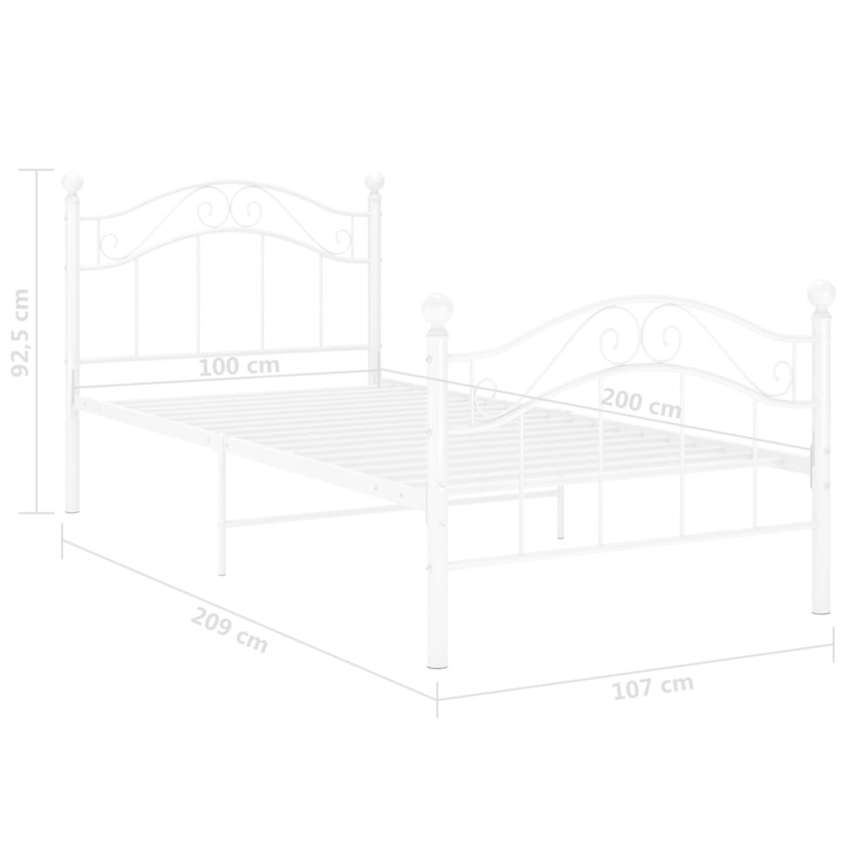vidaXL Bed Frame without Mattress White Metal 100x200 cm