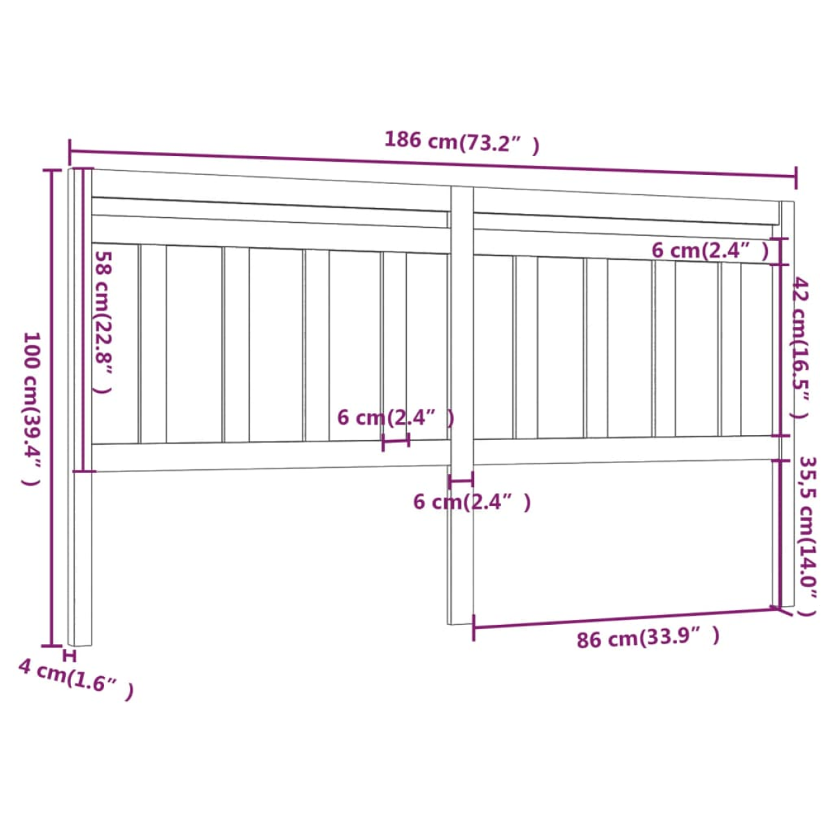 vidaXL Bed Headboard 186x4x100 cm Solid Wood Pine