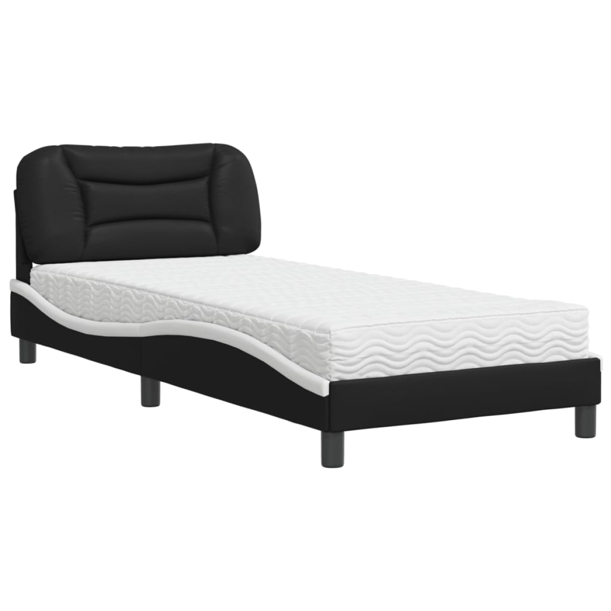 Get a better restful night's sleep from this bed with mattress! It makes a welcoming addition to any bedroom. Durable faux leather: Premium faux leather is a highly durable material. It is resistant to stain, making it easy to clean with a damp cloth. The smooth surface also gives a luxurious look and the beauty of real leather. Plywood slats: The plywood slats provide good weight distribution, ensuring that the mattress stays in place with every twist and turn of your body during sleep. Excellent support: The headboard pillow is stuffed with PP fibre for ultra-soft and optimal comfort, providing you with excellent back support while you're sitting up in bed to read or watch TV. Foam mattress: This 3-layer fabric bed mattress is filled with 22D PU foam for optimum comfort. It helps relieve fatigue and promote blood circulation, offering you complete relaxation and a good quality of sleep. In addition, the mattress is available in H2 and H3 hardness, so you can simply turn the mattress to choose the hardness that suits you best. Waved side design: The waved look of the bed frame is stylish and sophisticated, adding a modern and elegant touch to your decor, making it the focal point of your bedroom.