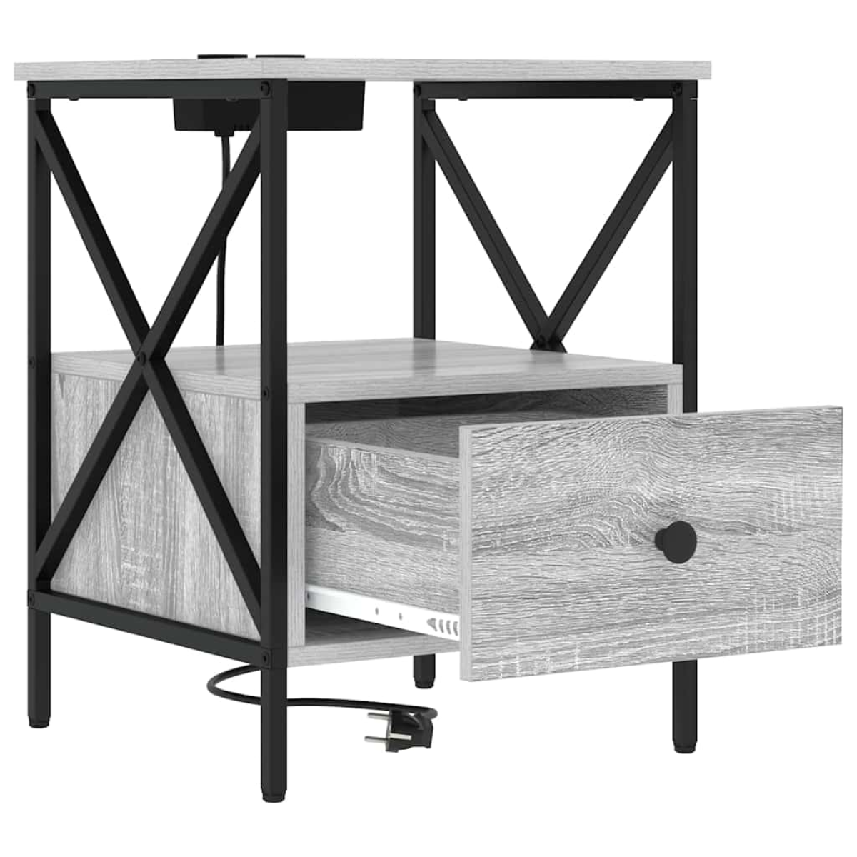 This bedside table mixes modern elegance with practicality, making it a lovely fit for any bedroom. It has a smart, rectangular shape and textured surfaces that add a touch of class to any contemporary space. It’s designed to be functional, giving you a spot where style meets daily needs. Perfect for folks who like things simple but smart, this table keeps your nighttime essentials handy while adding a slight flair to your sleeping area. Stylish Texture: This bedside table crafted with a textured engineered wood surface looks fab and feels unique. Its smooth finish adds a lovely touch to your bedroom. Practical Storage: With a drawer and shelves, it’s perfect for stashing away books, gadgets, and other bits, keeping your space neat and accessible. Handy Charging: Enjoy the built-in charging station that’s just right for keeping your devices powered overnight, no more faffing about with tangled cords. Strong Steel Frame: This table is built to last, thanks to its sturdy steel frame. Whether you’re resting a book or showing off some decor, it’s got a solid foundation. Easy to Care For: Keeping it looking fresh is a doddle. Just give it a quick wipe with a damp cloth and you’re sorted.