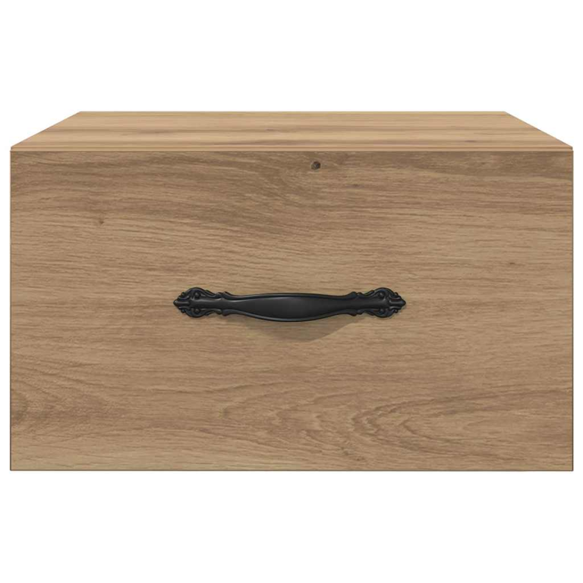 This wall-mounted bedside cabinet is the perfect mix of function and style, with a rustic design that really shows off its natural, rugged feel. It’s made for those who appreciate simplicity, with a square shape that works well in any bedroom setup. Ideal for urban flats or snug homes, it saves crucial floor space and helps keep things neat and tidy. With its clean lines and warm tones, this cabinet turns any bedroom into a cosy haven while sorting out your storage needs. Materials: Built from engineered wood, this bedside cabinet adds a sturdy and classy touch to your bedroom. The engineered wood ensures it's strong and stable, giving you a reliable piece of furniture. The metal bits add a bit of an industrial edge, making it tough for daily use but still stylish. Included Components: This cabinet is all about smart design and practical features. The metal handles shaped like the letter 'D'are easy to grip, making everyday use a doddle. It’s made of engineered wood throughout the frame, drawers, and back, ensuring it looks good and functions well together. It fits perfectly with modern storage needs. Features / Function / Design: Think of handy storage; it has all the space you need to keep your nighttime essentials organised. It's wall-mounted, so it saves on space, making it ideal for tight spots. Its square shape makes sure you're using every bit of corner space smartly. Recommended Uses: Perfect for bedrooms, this cabinet brings both function and style to small areas. Whether you're using it to store books, charge your gadgets, or just as a nightstand, its flexibility adds value to any home. Care & Maintenance: To keep it looking fresh, just give it a wipe with a dry cloth now and then. This simple upkeep makes sure it lasts and stays nice without needing much hassle from you.