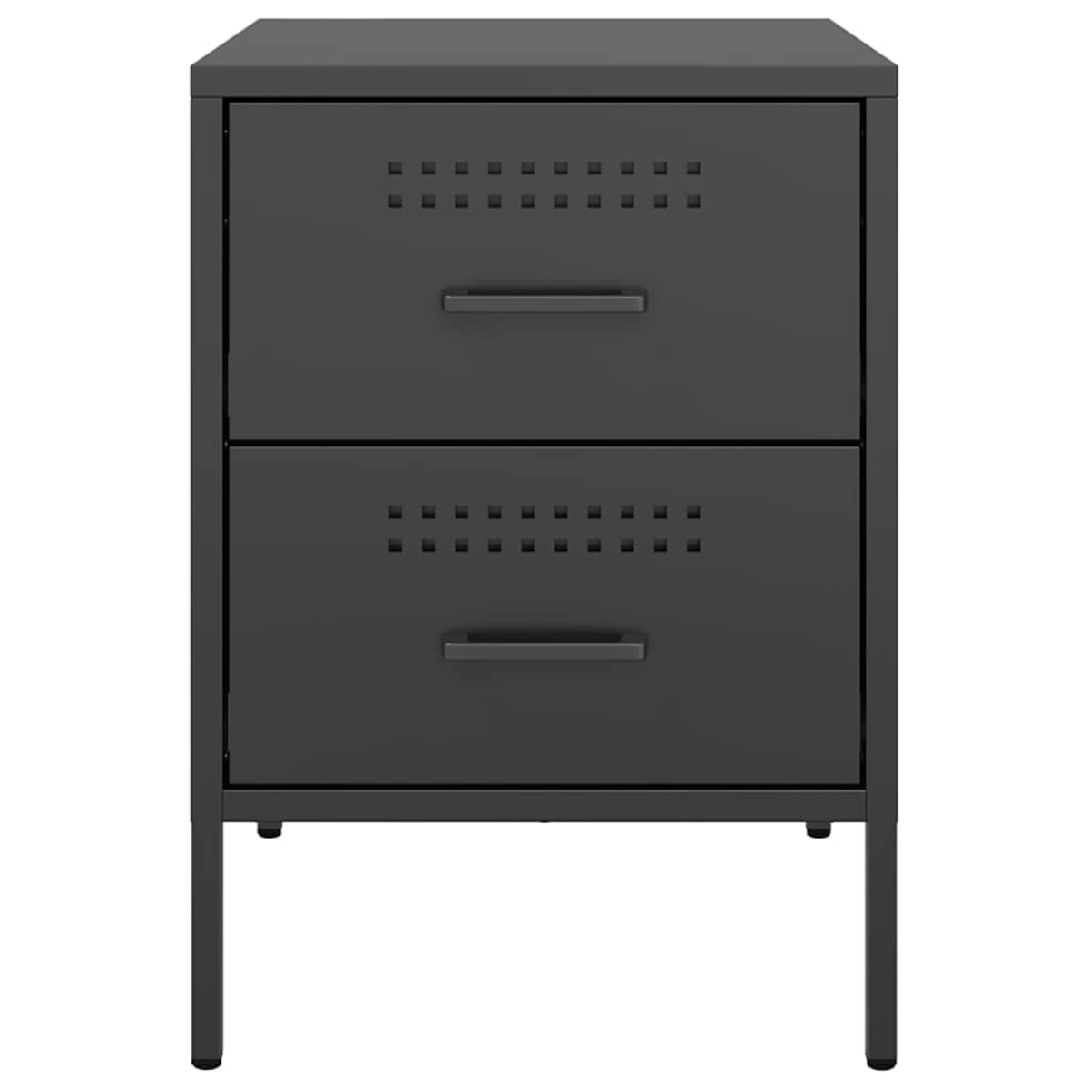 This bedside cabinet with an industrial style makes a timeless addition to your interior decor. Robust and stable frame: Steel is strong, stable, and durable, making it an ideal choice for a wide range of applications, from furniture manufacturing to construction.Ample storage space: The bedside table with 2 drawers provides ample storage space for keeping your various daily essentials well-organised and within easy reach.Easy to clean: The steel nightstand is moisture-resistant and easy to clean with a damp cloth.Multifunctional design: This cabinet is ideal to serve as a nightstand next to your bed, a side table next to the couch in the living room, or as an additional cabinet in the study.Displaying function: You can also place your favourite photos, decorations or flowers on top of the bedside table to enrich your life. Warning:To prevent it from tipping over, this product must be used with the provided wall attachment device.